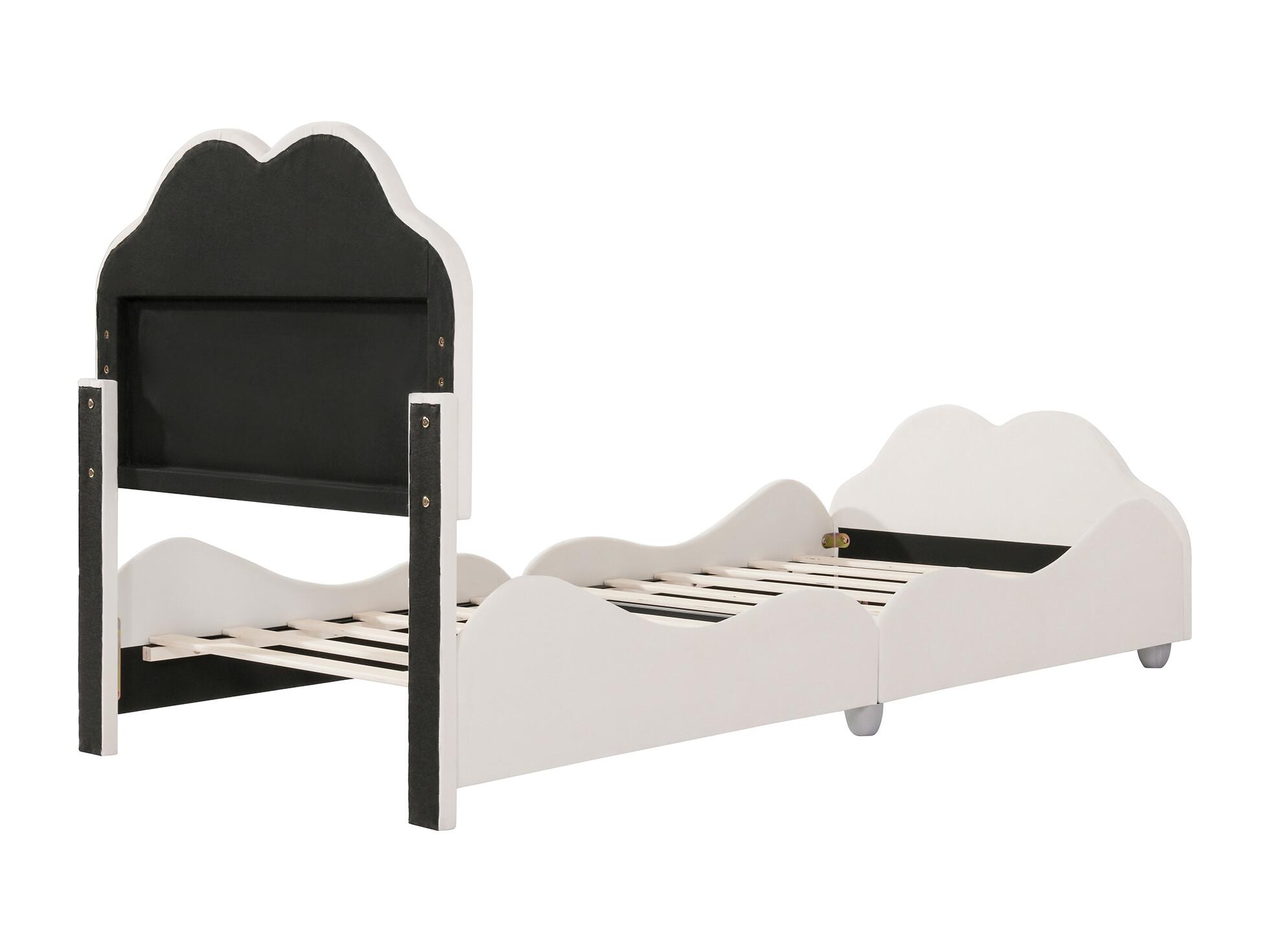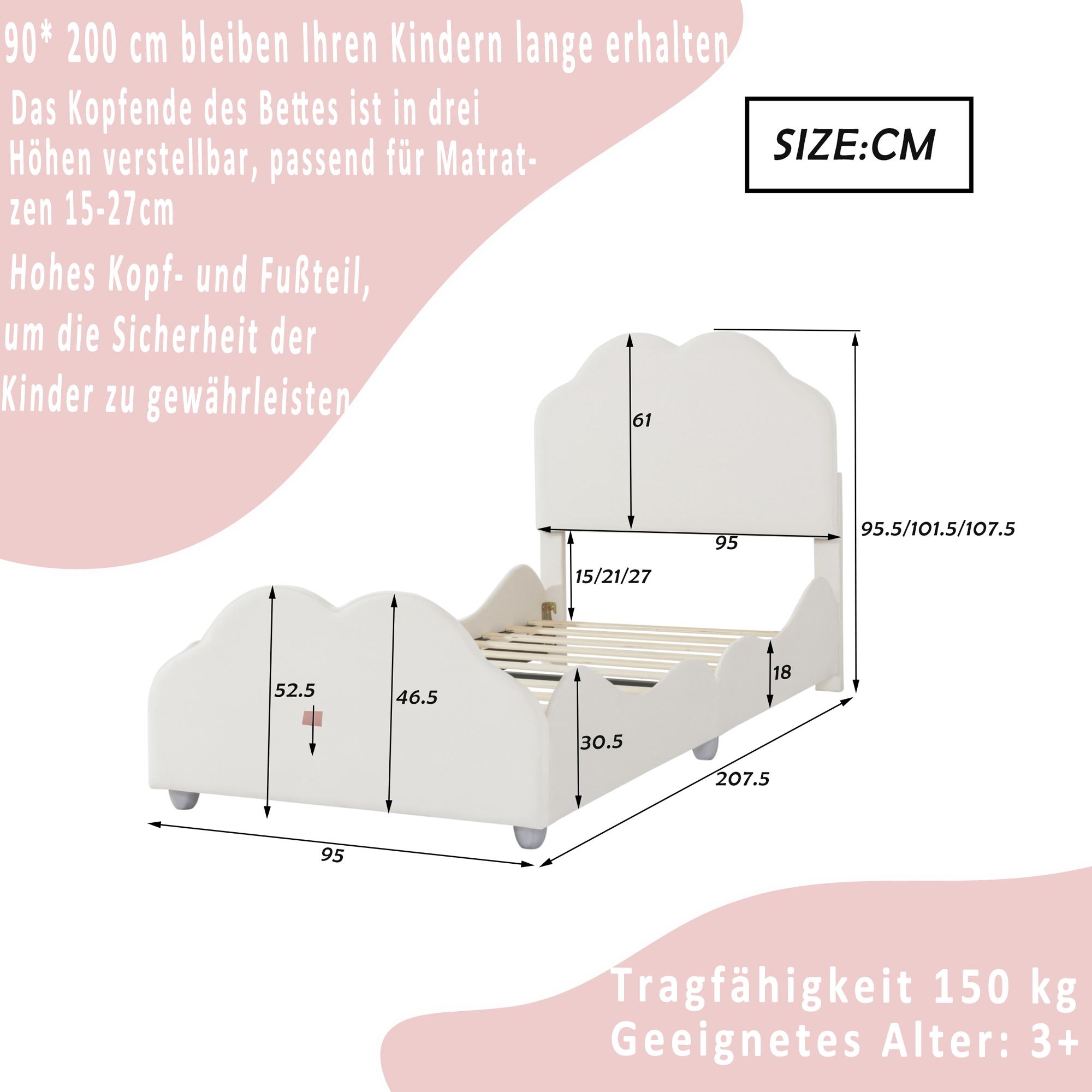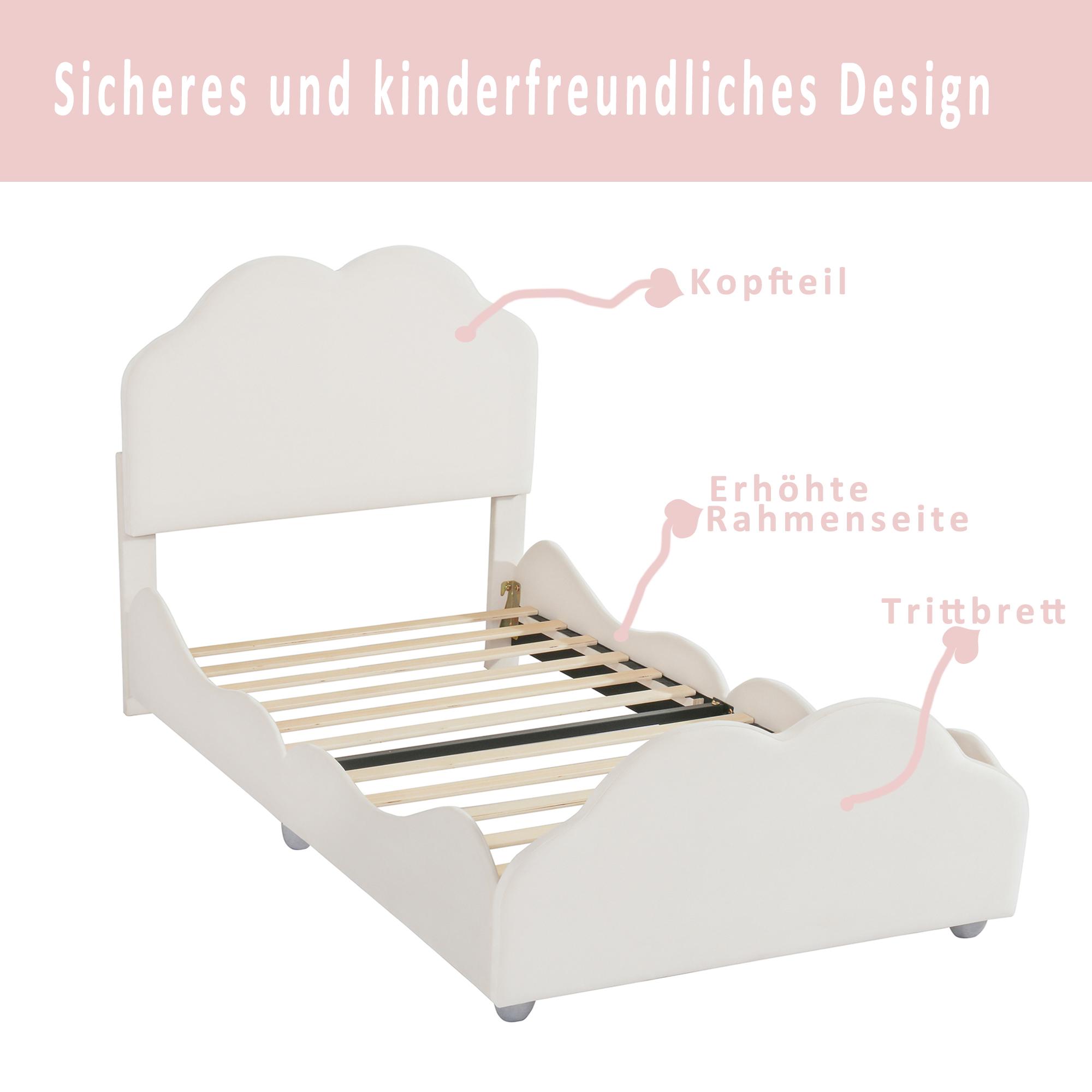 Letto per bambini 90 x 200 cm - Letto singolo con testiera a forma di nuvola e sponde di sicurezza - velluto beige