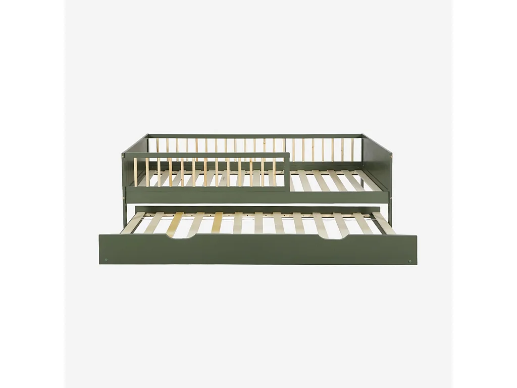 Letto a nido per bambini in pino naturale con rete a doghe e cassetto,