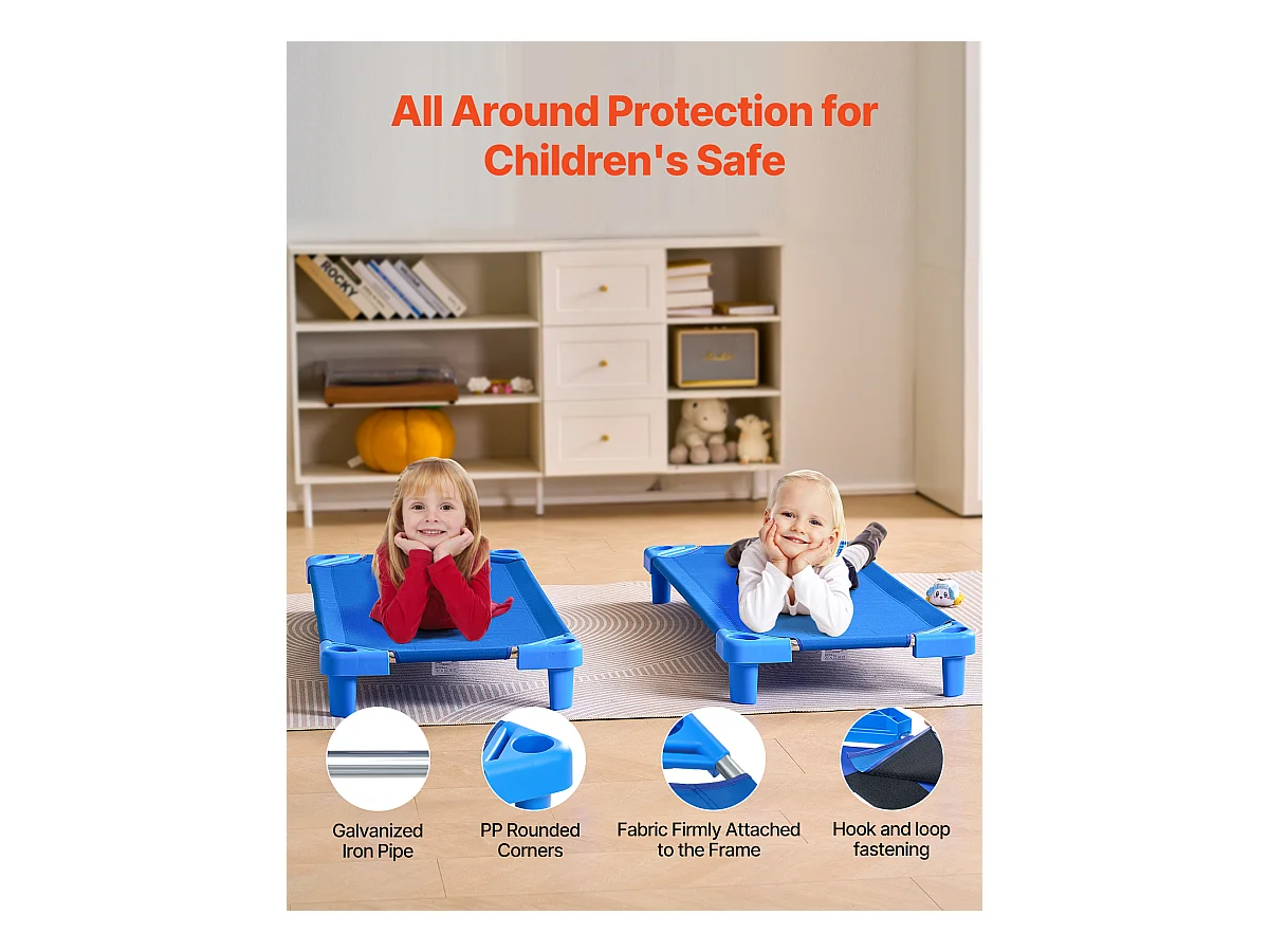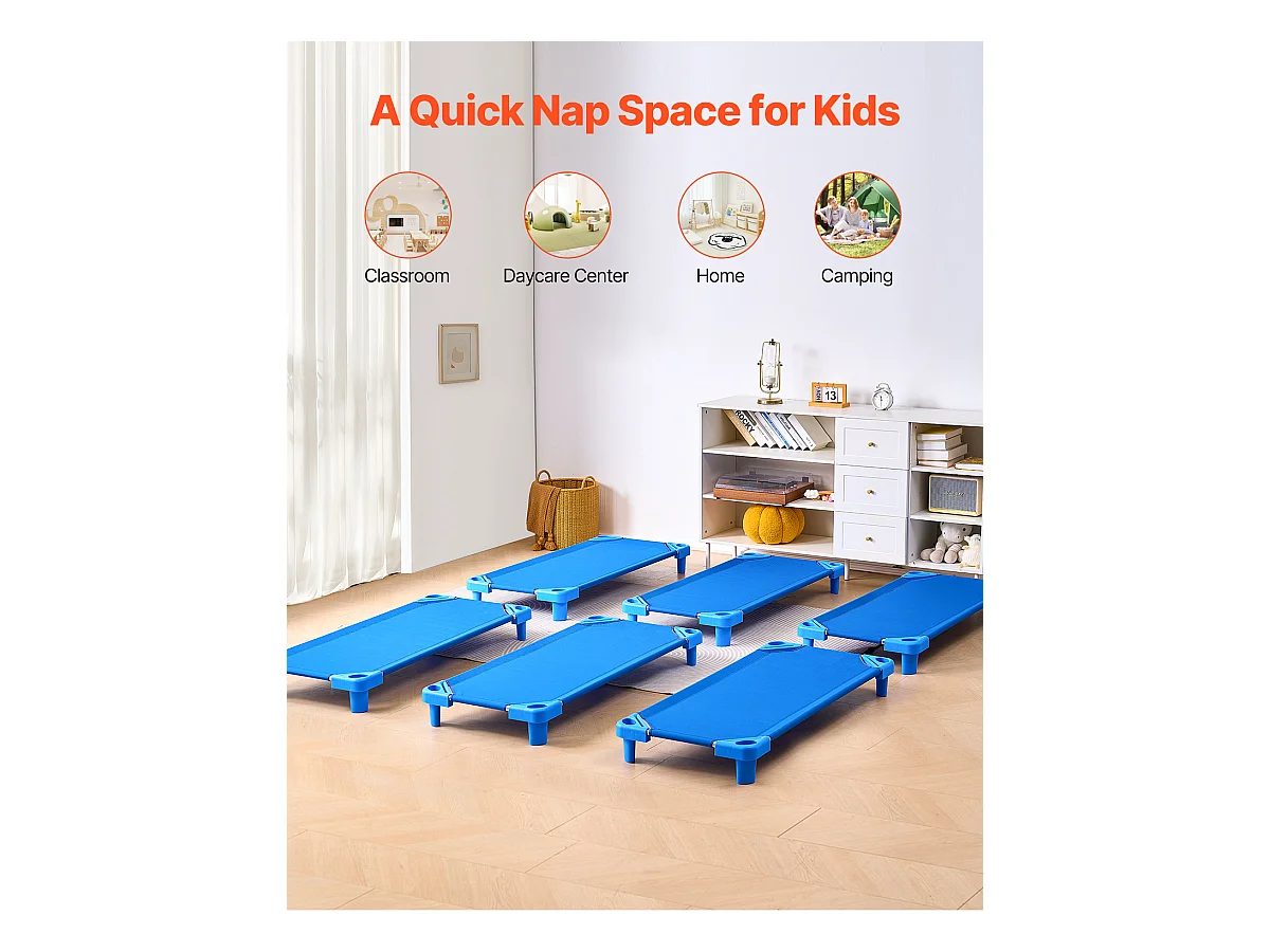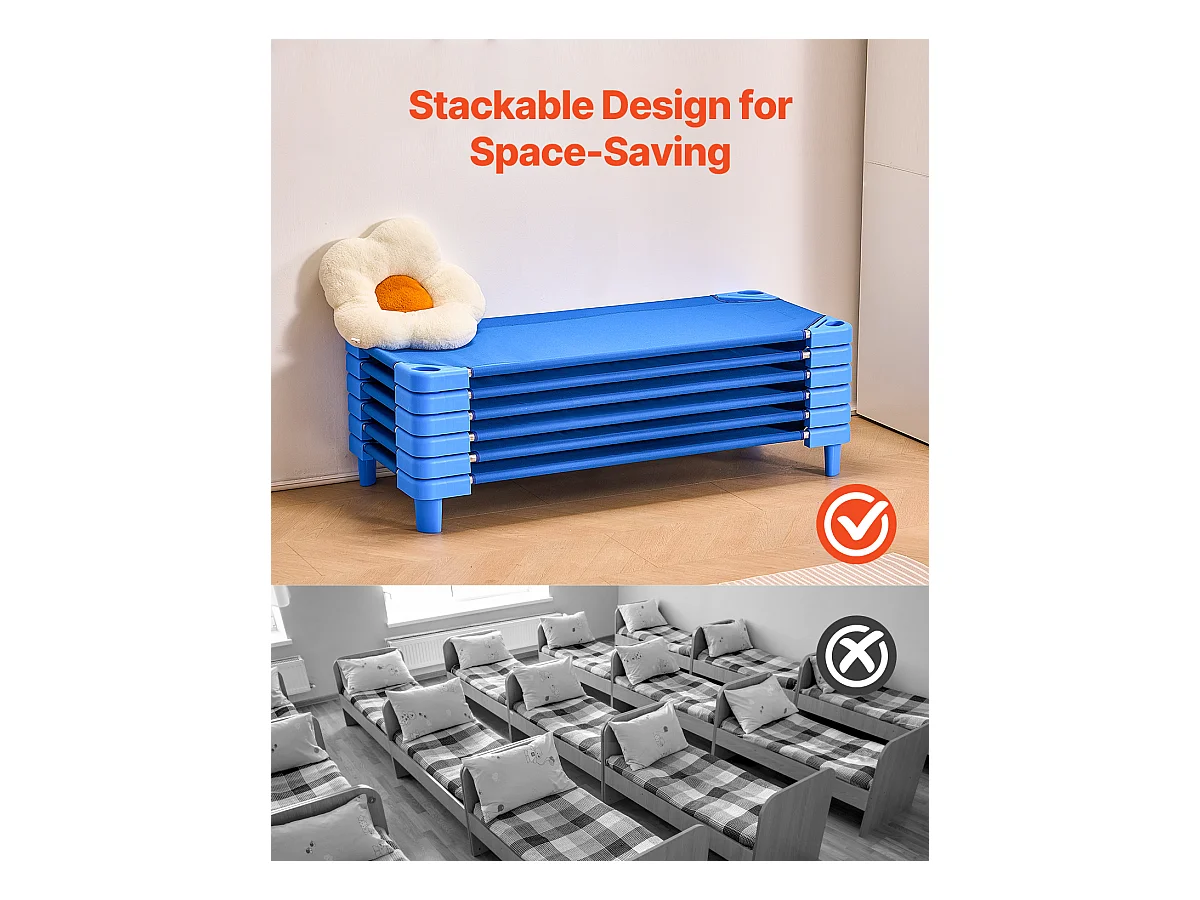 Letto per Bambino SucceBuy Pileabile, 132 x 58 cm, Blu, In Lotto da 6, per Asili Nido, Scuole Materne e Aule Scolastiche