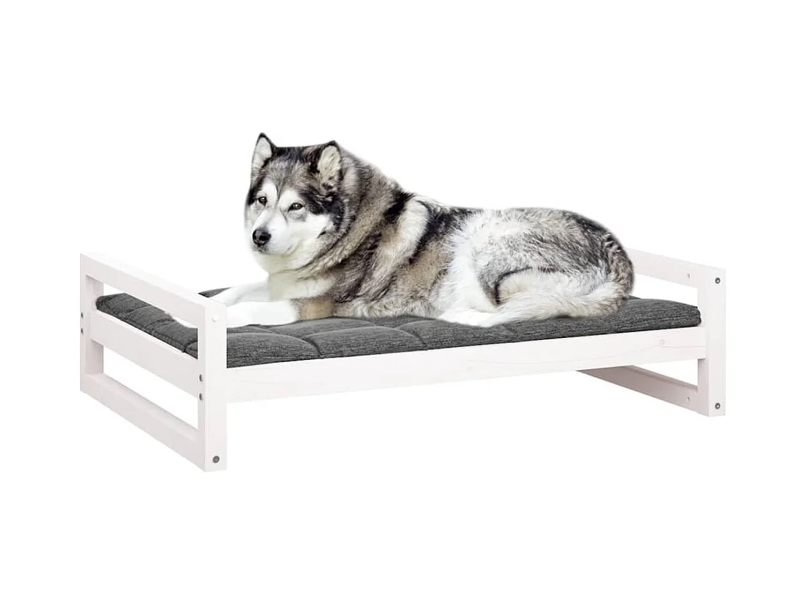 Cuccia bianca per cani 105,5x75,5x28 cm in legno massello di pino