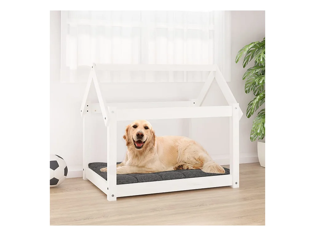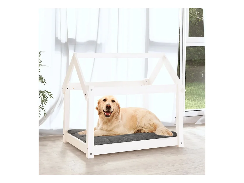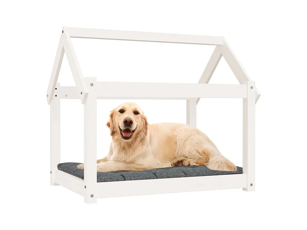 Cuccia bianca per cani 105,5x75,5x28 cm in legno massello di pino