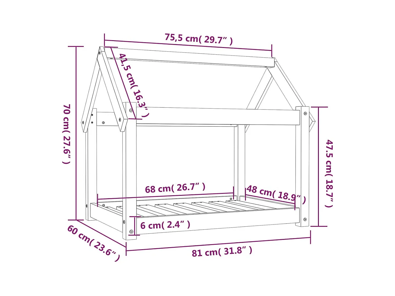 Letto per cani bianco 81x60x70 cm in legno di pino massiccio