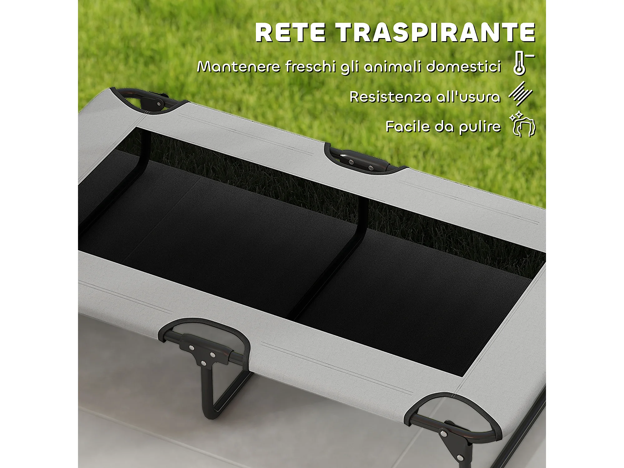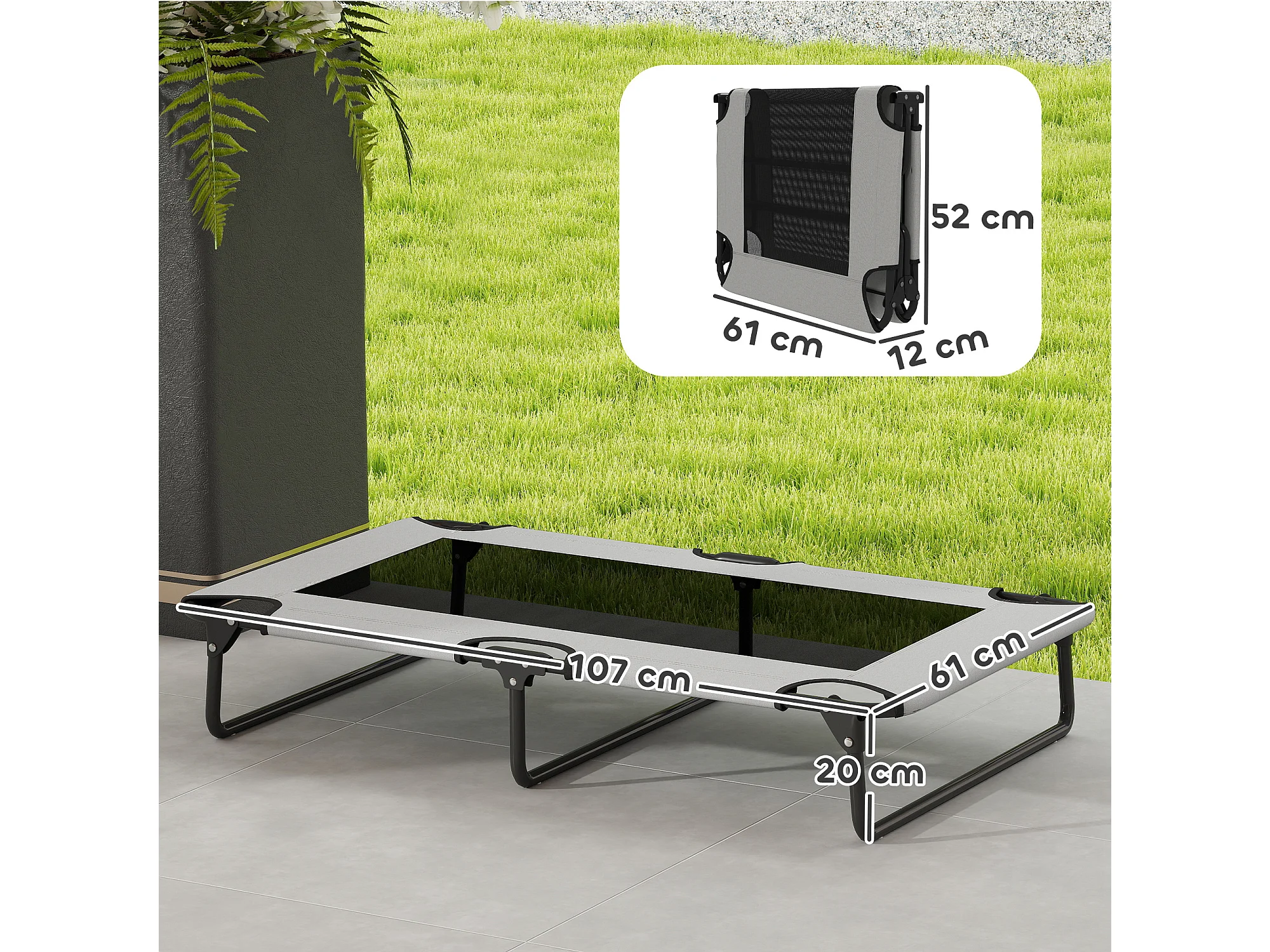 Letto per cani grandi pieghevole con tessuto a rete, 107x61x20cm, grigio