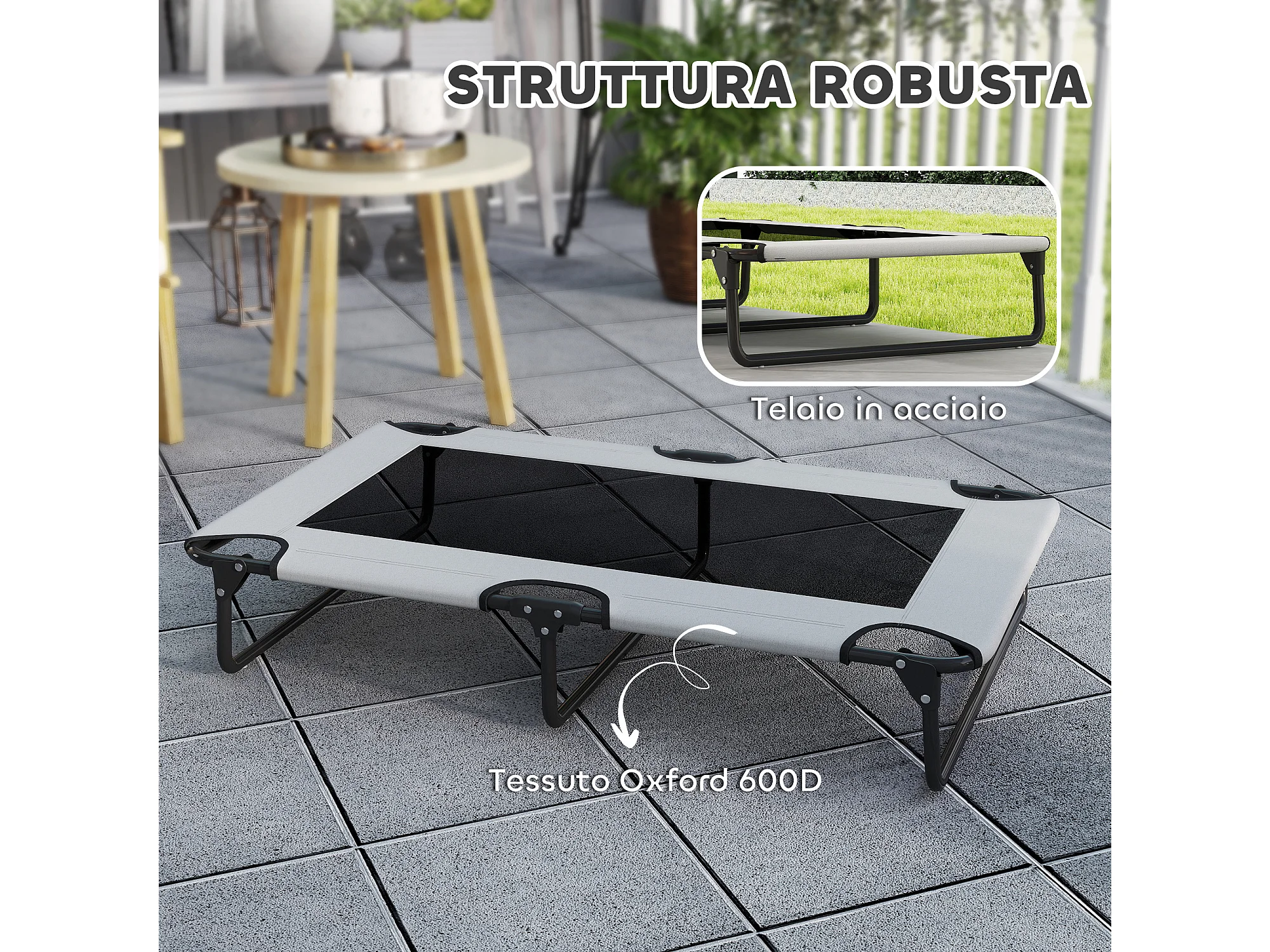 Lettino per cani pieghevole con tessuto oxford 600d grigio 59x46x15cm