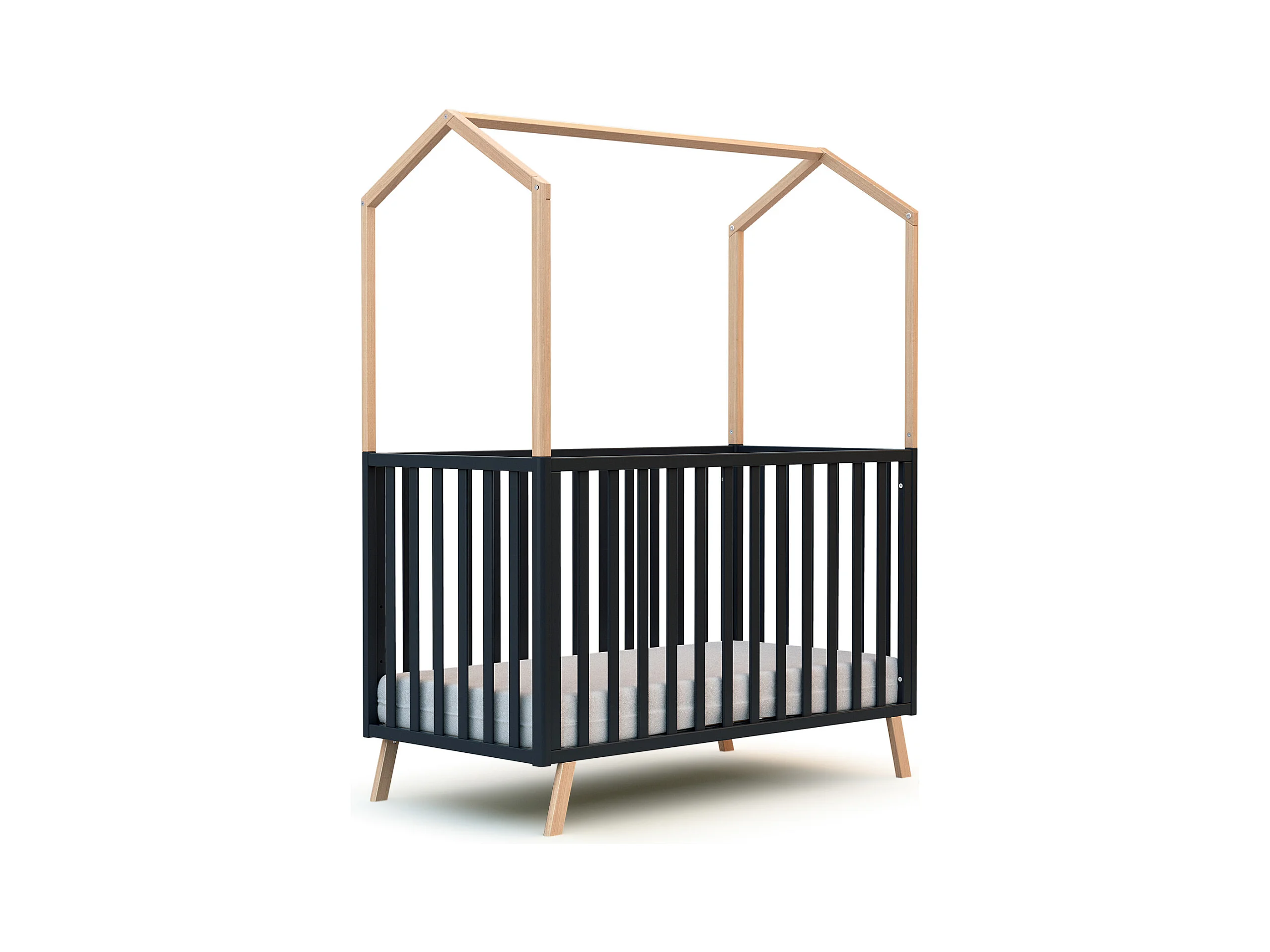 Lettino forma di casa trasformabile CONFORT legno - Grafite grigio/Faggio