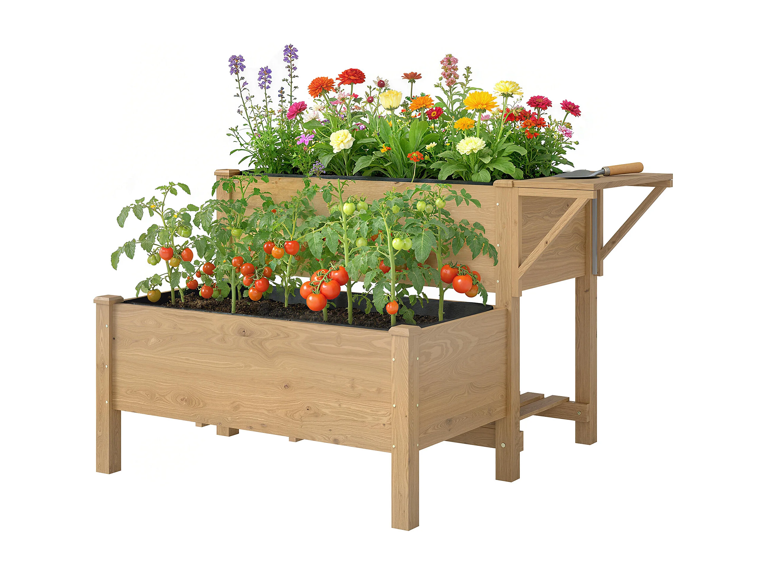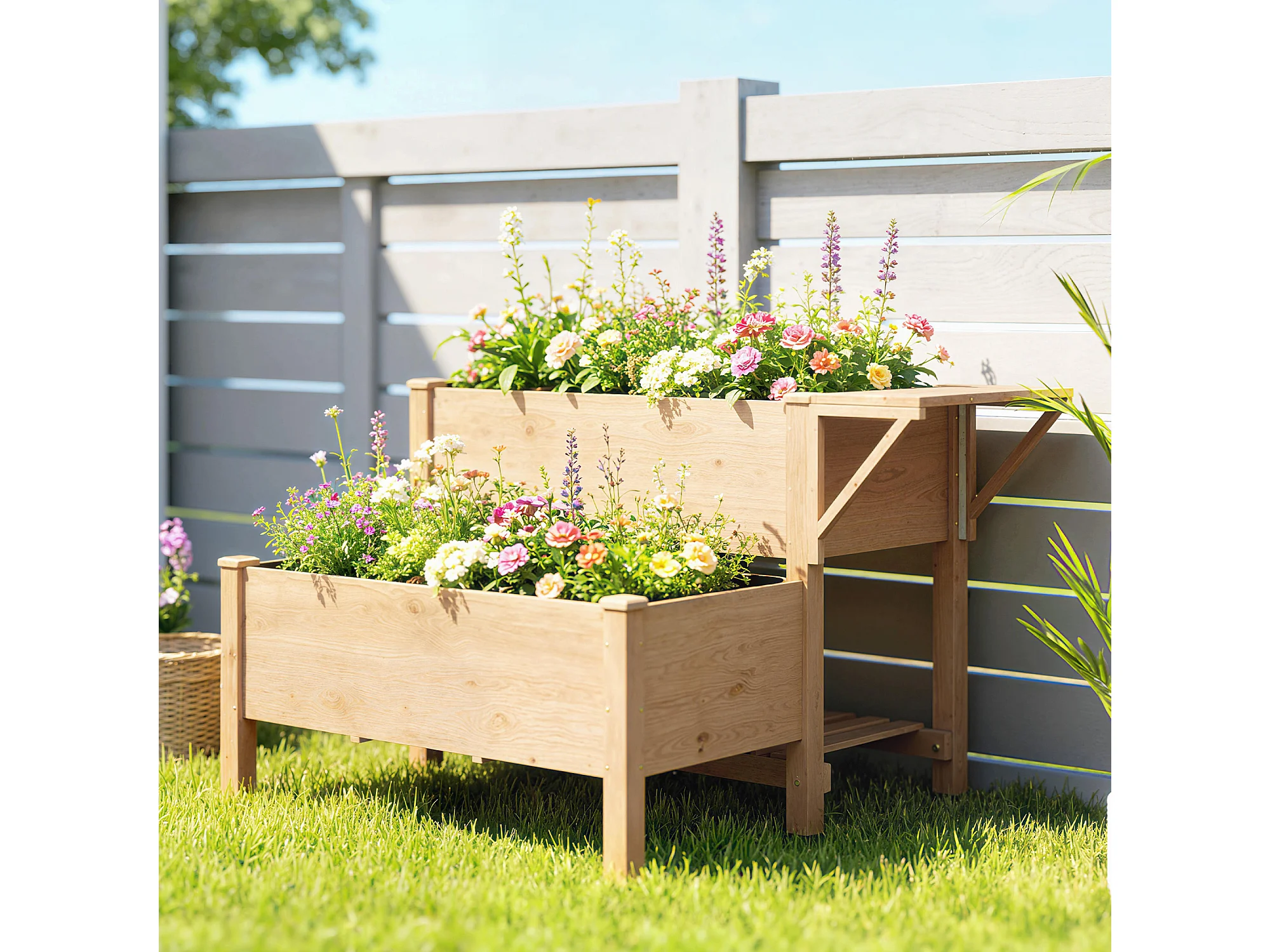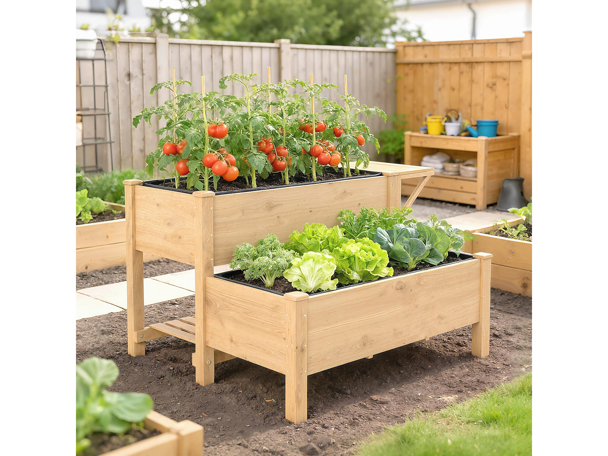 Letto per orto rialzato a 2 livelli in legno di abete marrone