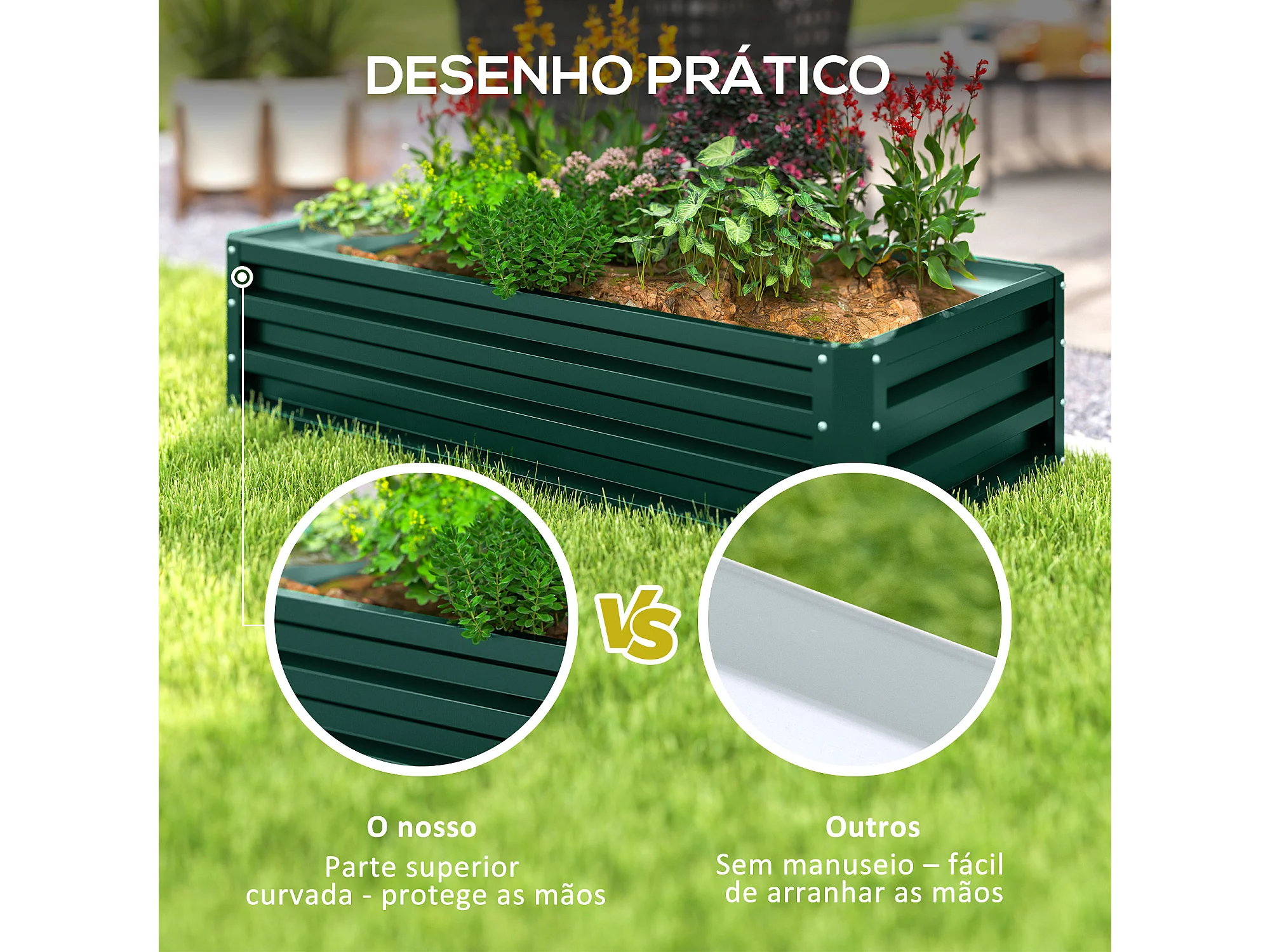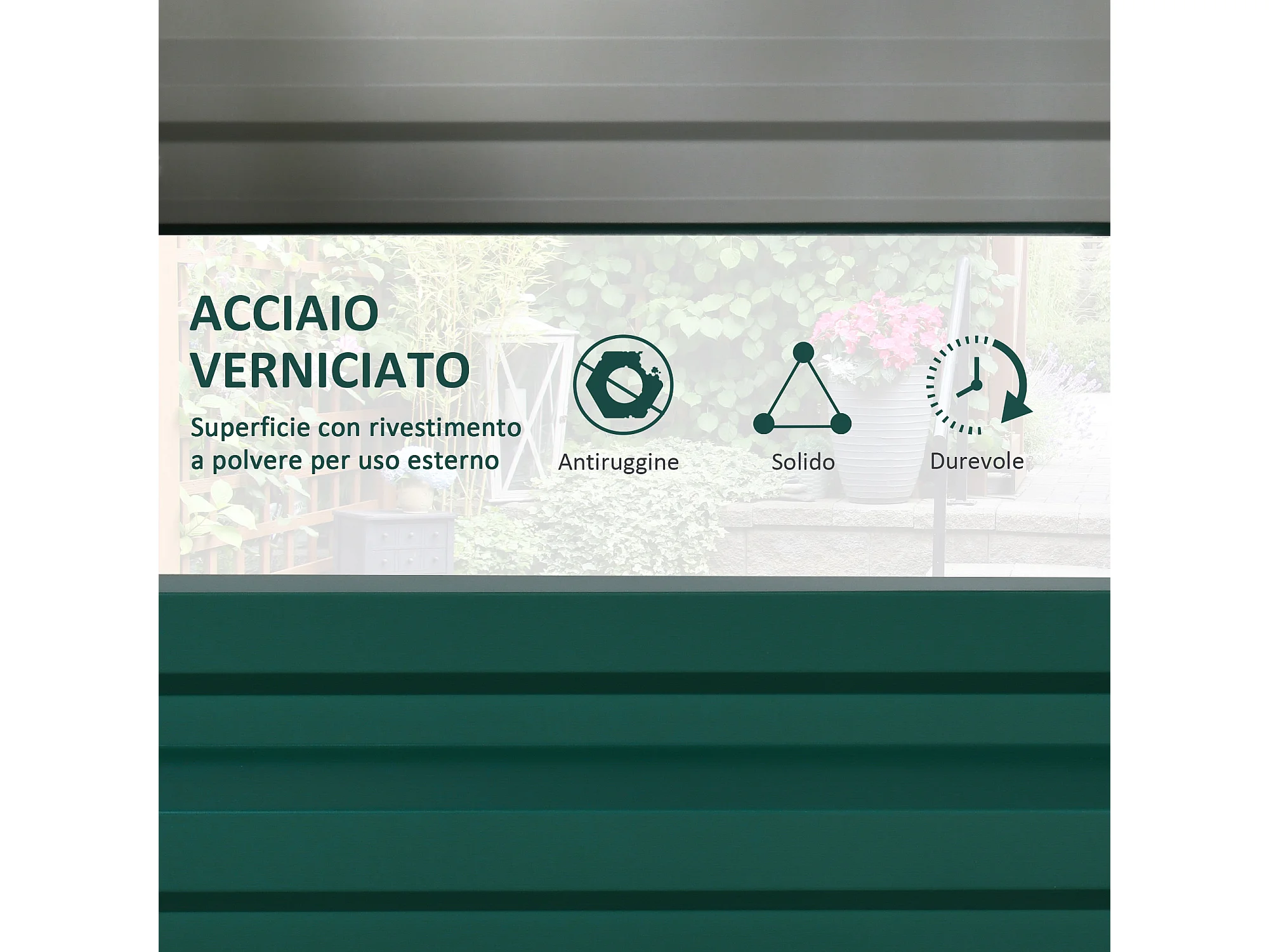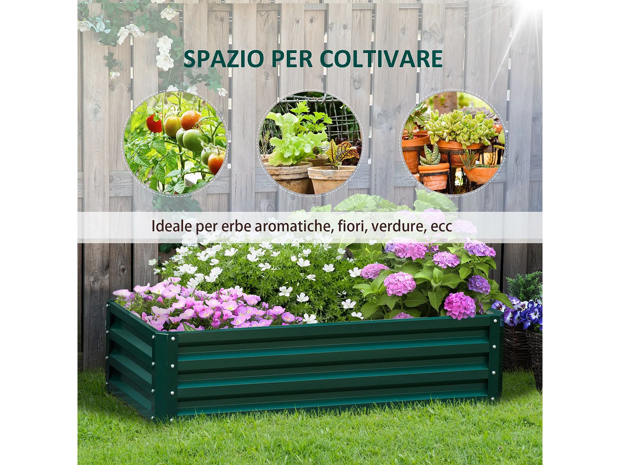 Letto per orto rialzato a fondo aperto in acciaio zincato verde