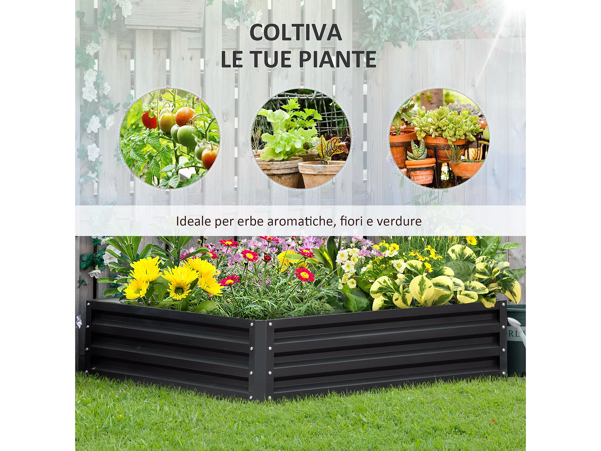 Aiuola rialzata modulabile e senza fondo in acciaio grigio scuro