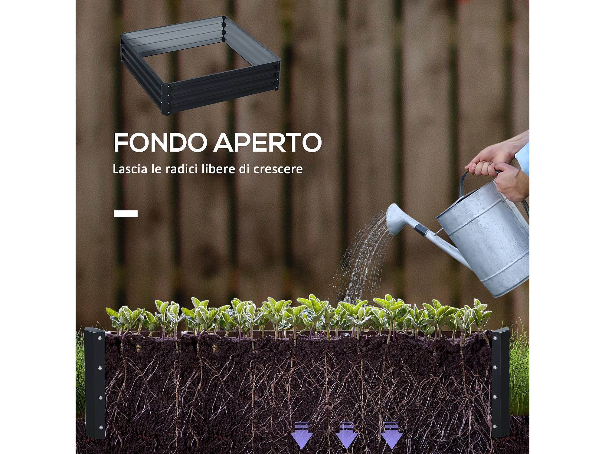 Letto per orto rialzato a fondo aperto in acciaio zincato grigio