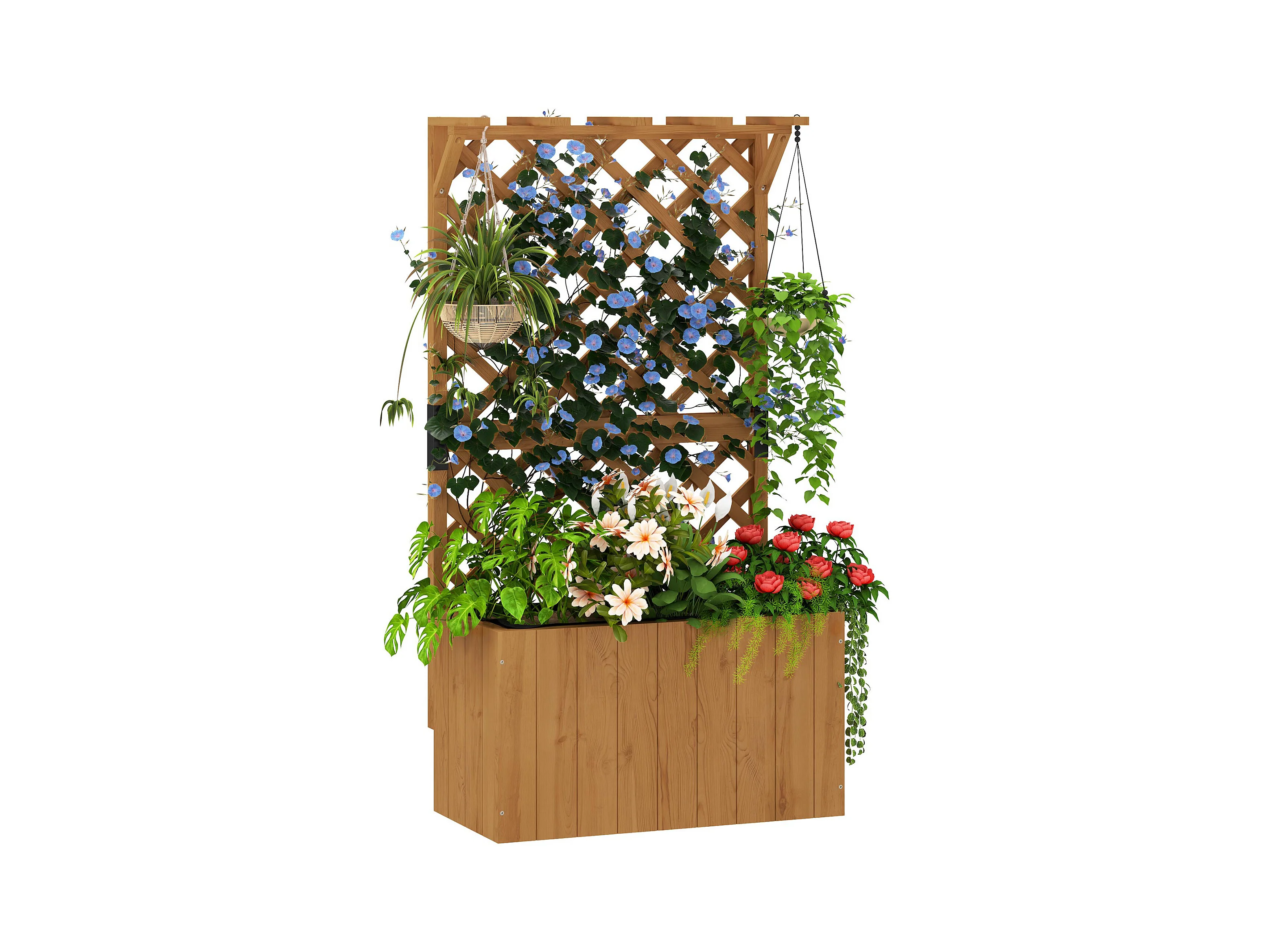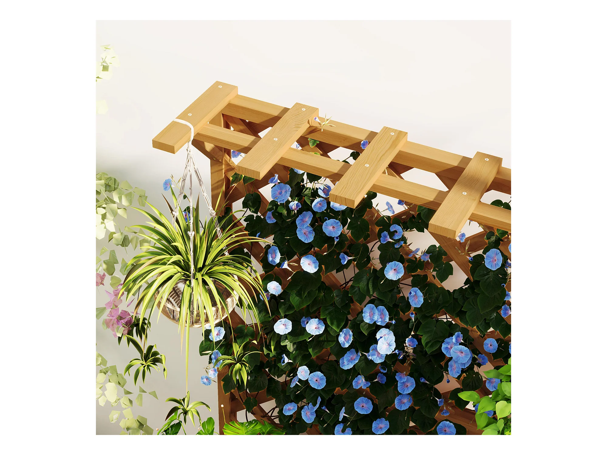 Fioriera con traliccio, set di 2 vasi rialzati con traliccio, 150 x 33 x 156 cm, traliccio in legno per piante rampicanti con fori di drenaggio