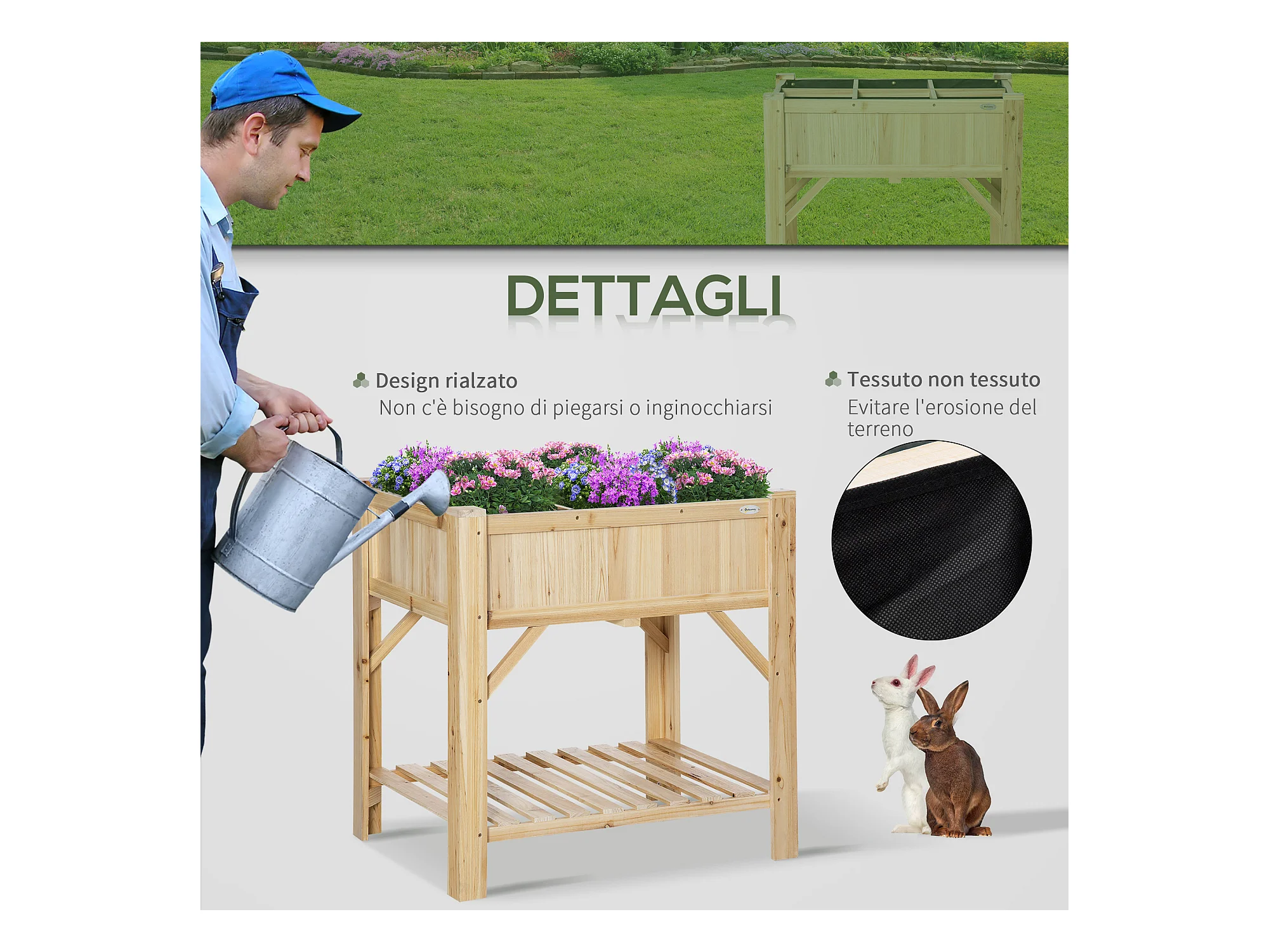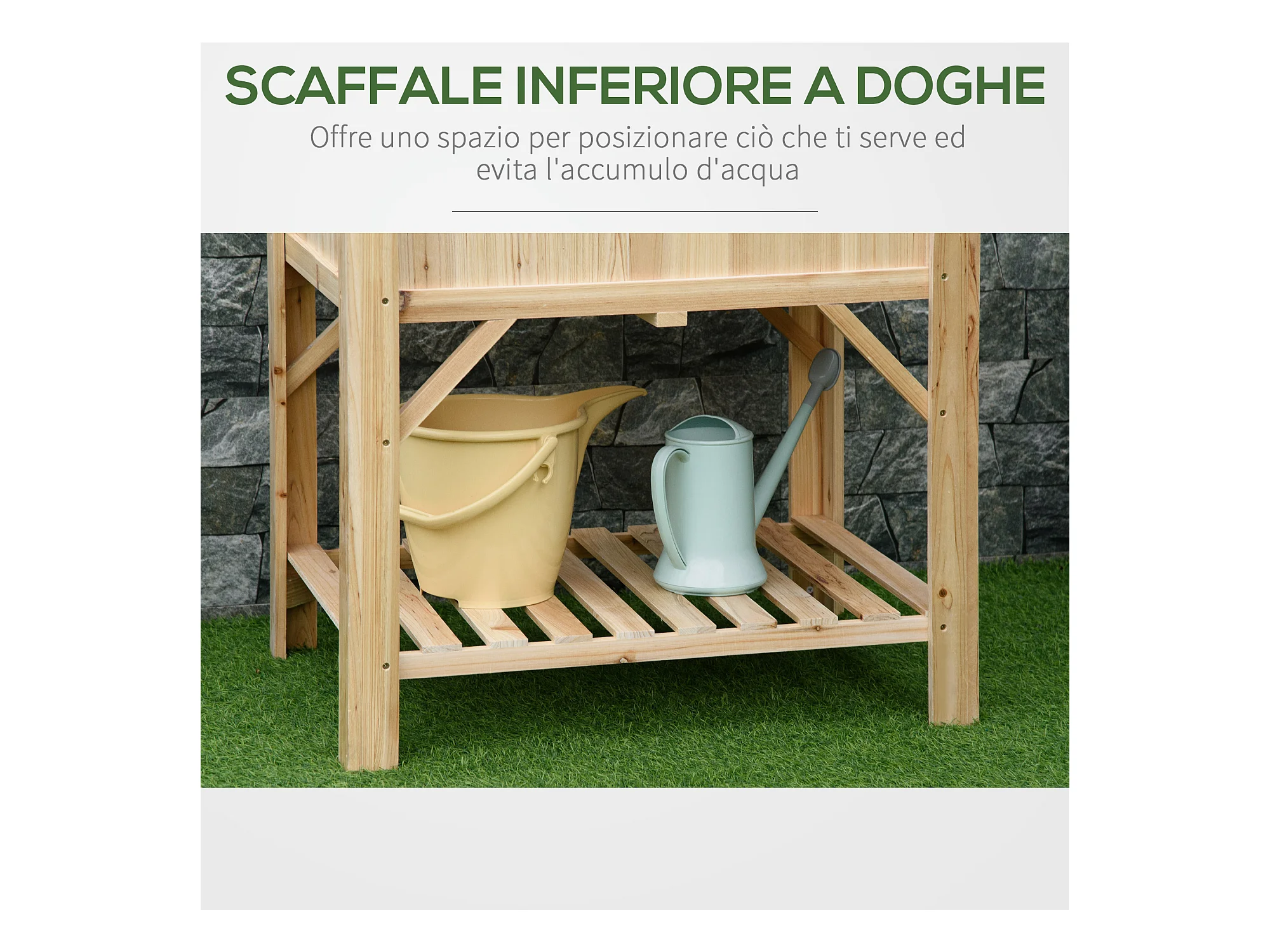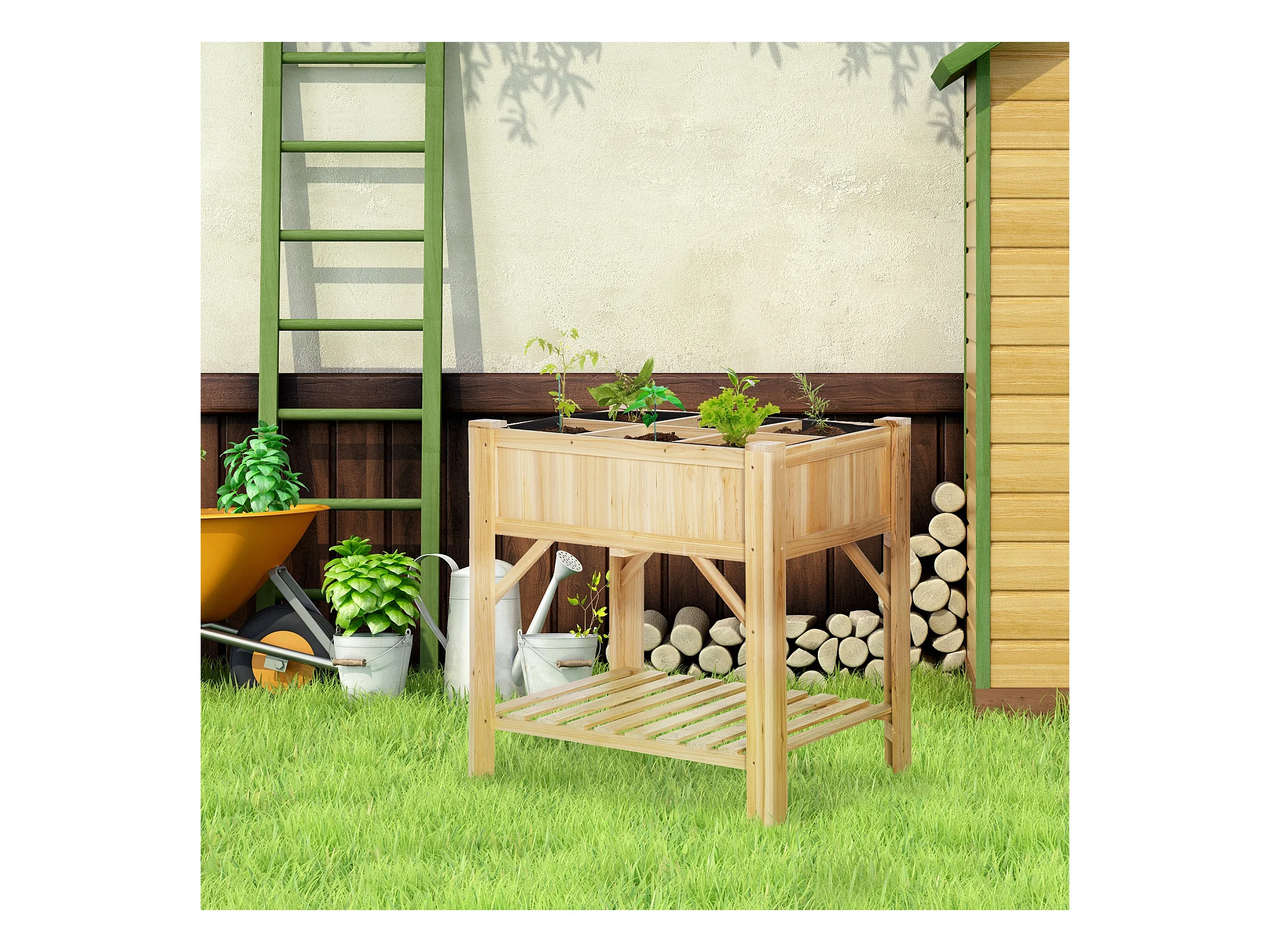 Fioriera rialzata in legno con gambe e ripiano inferiore