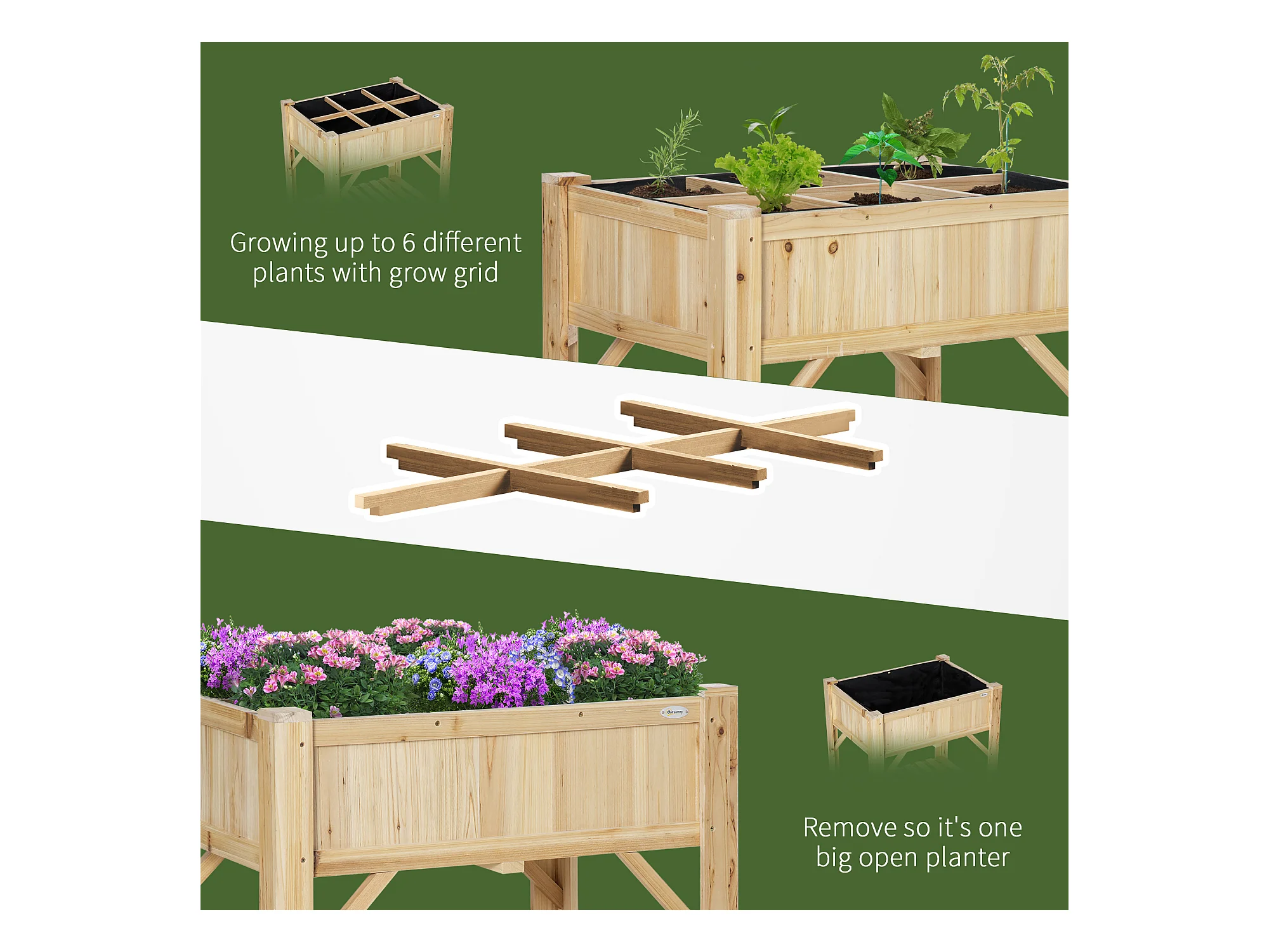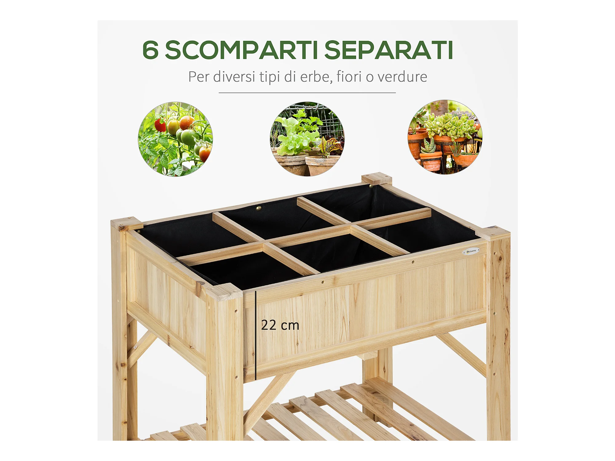 Letto per orto rialzato in legno con 6 scomparti 78.5x58x81cm