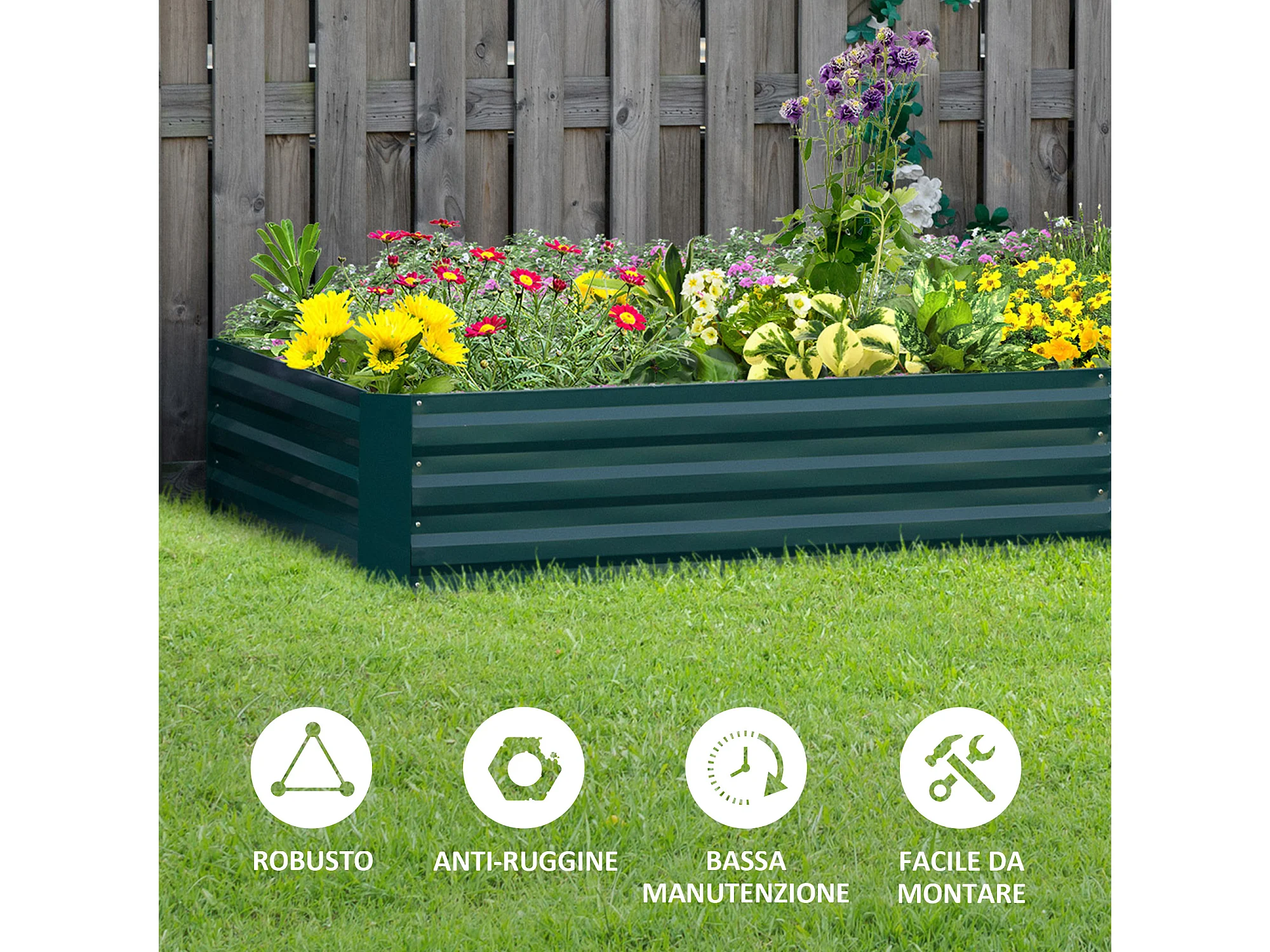 Letto per orto rialzato a fondo aperto in acciaio zincato verde