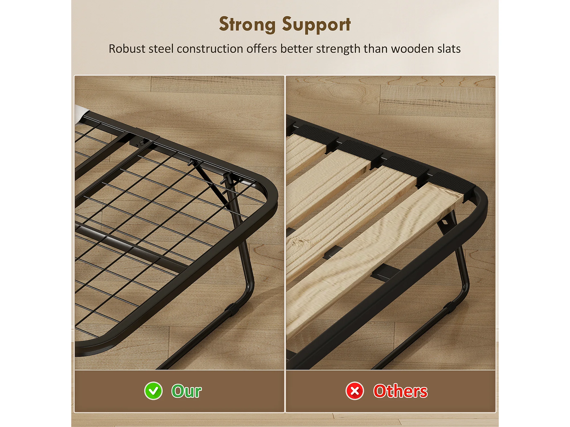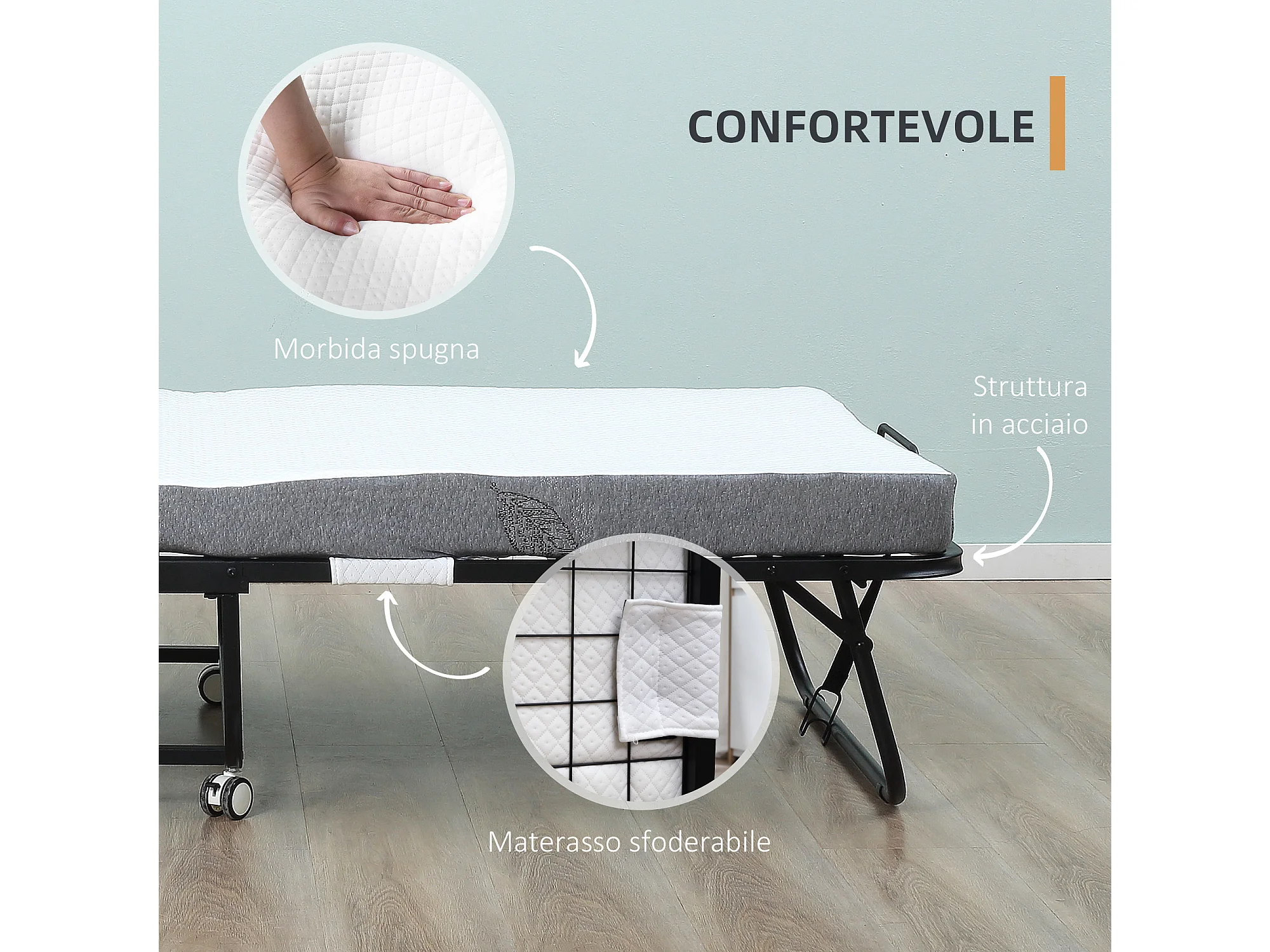 Letto pieghevole 90x200 cm con materasso e ruote con freno