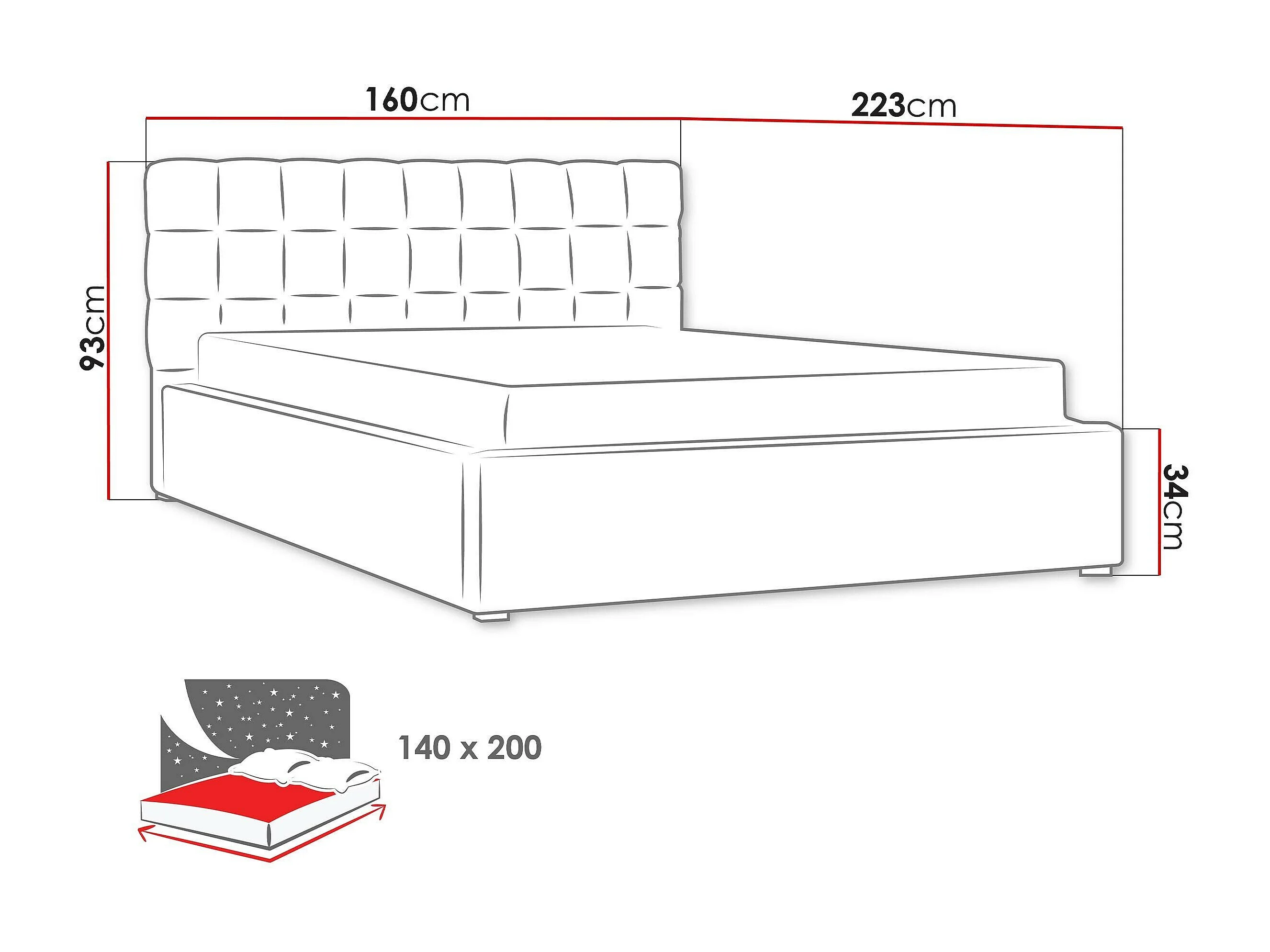 Letto Pomona 107, Doppio, Grigio, 140x200, Arazzo, Con, 160x223x93cm