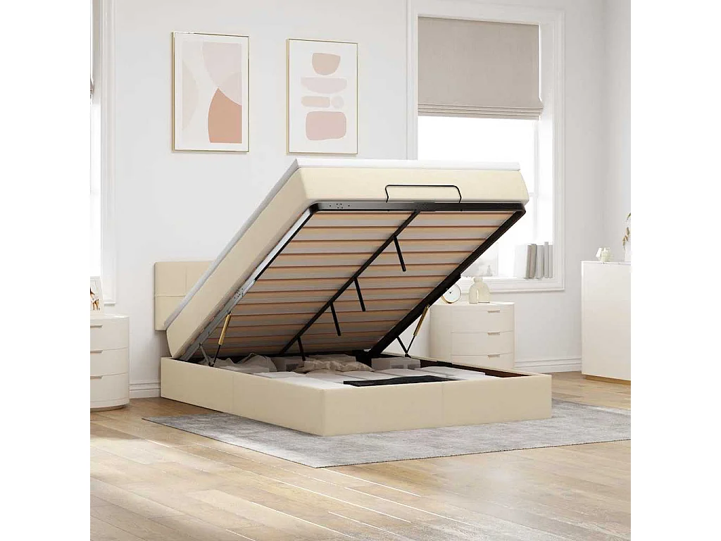 Letto pouf con materasso crema 140x200 cm tessuto