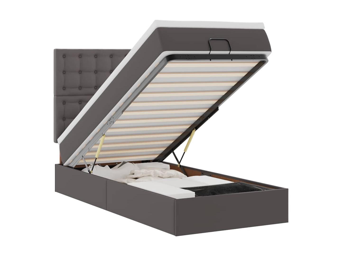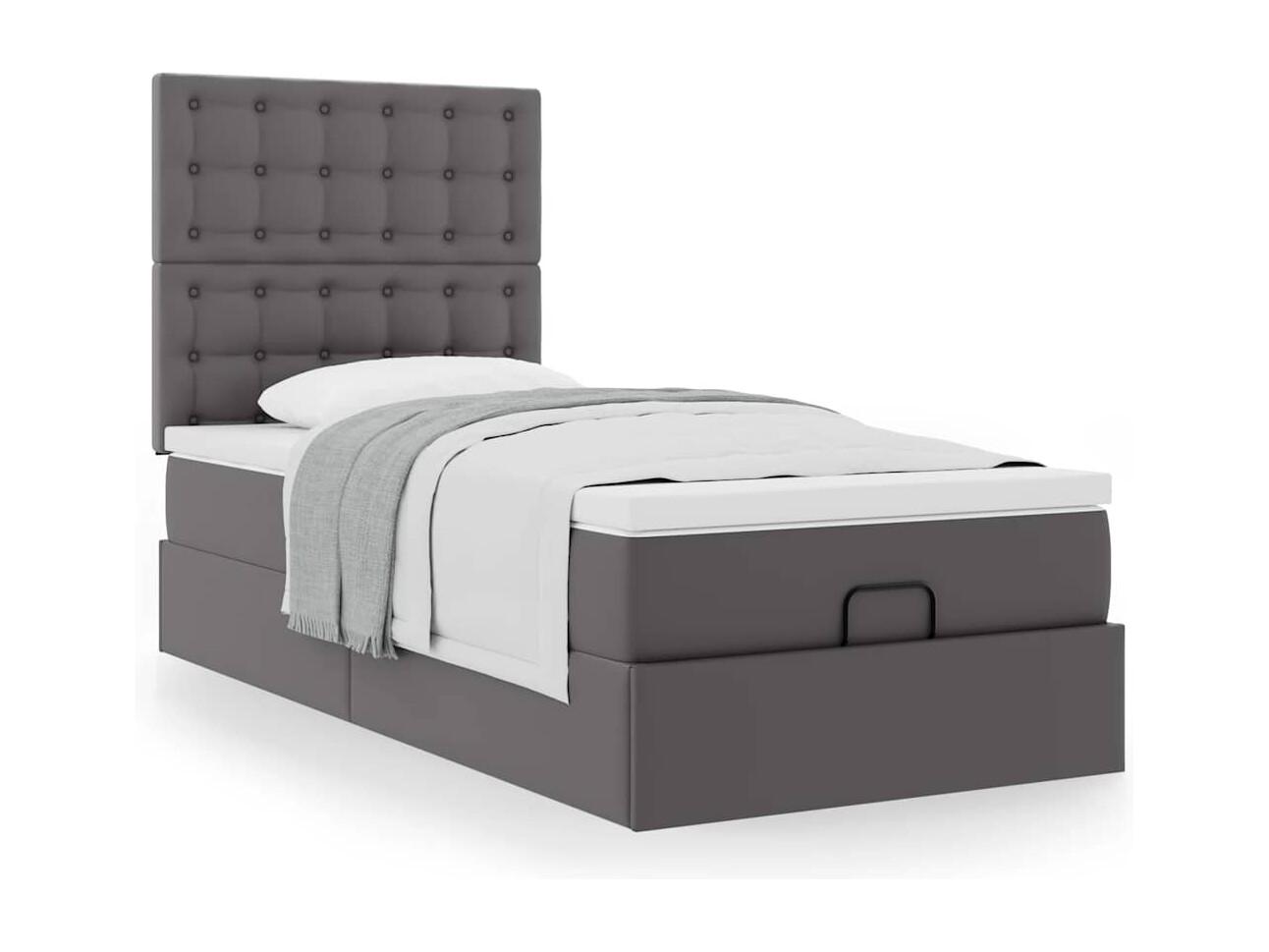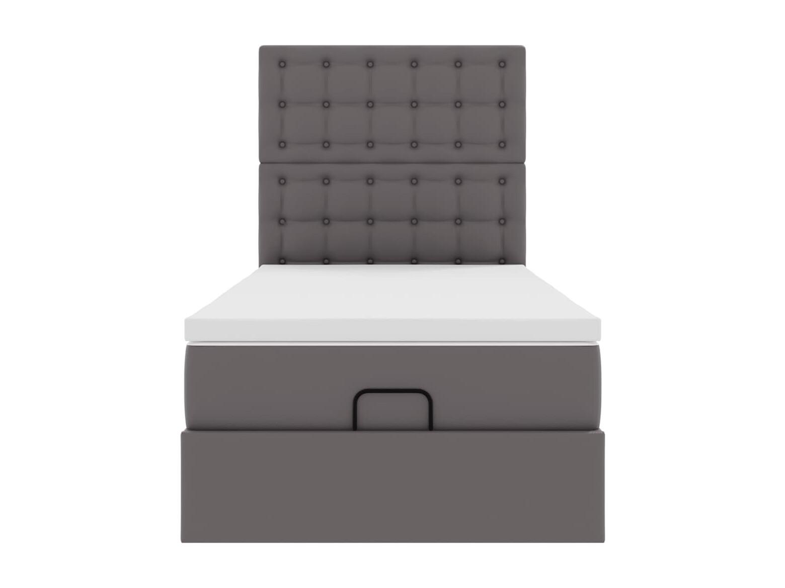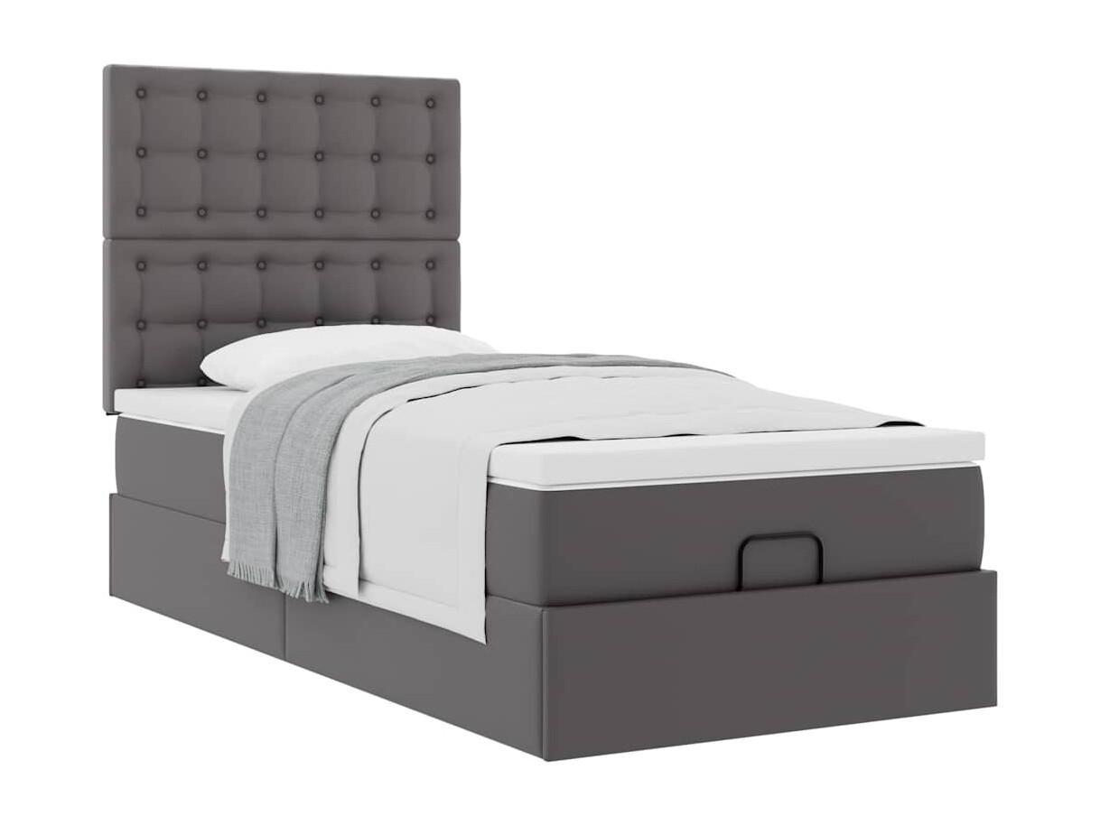 Struttura Letto Pouf con Materasso Grigio 90x200 cm Similpelle