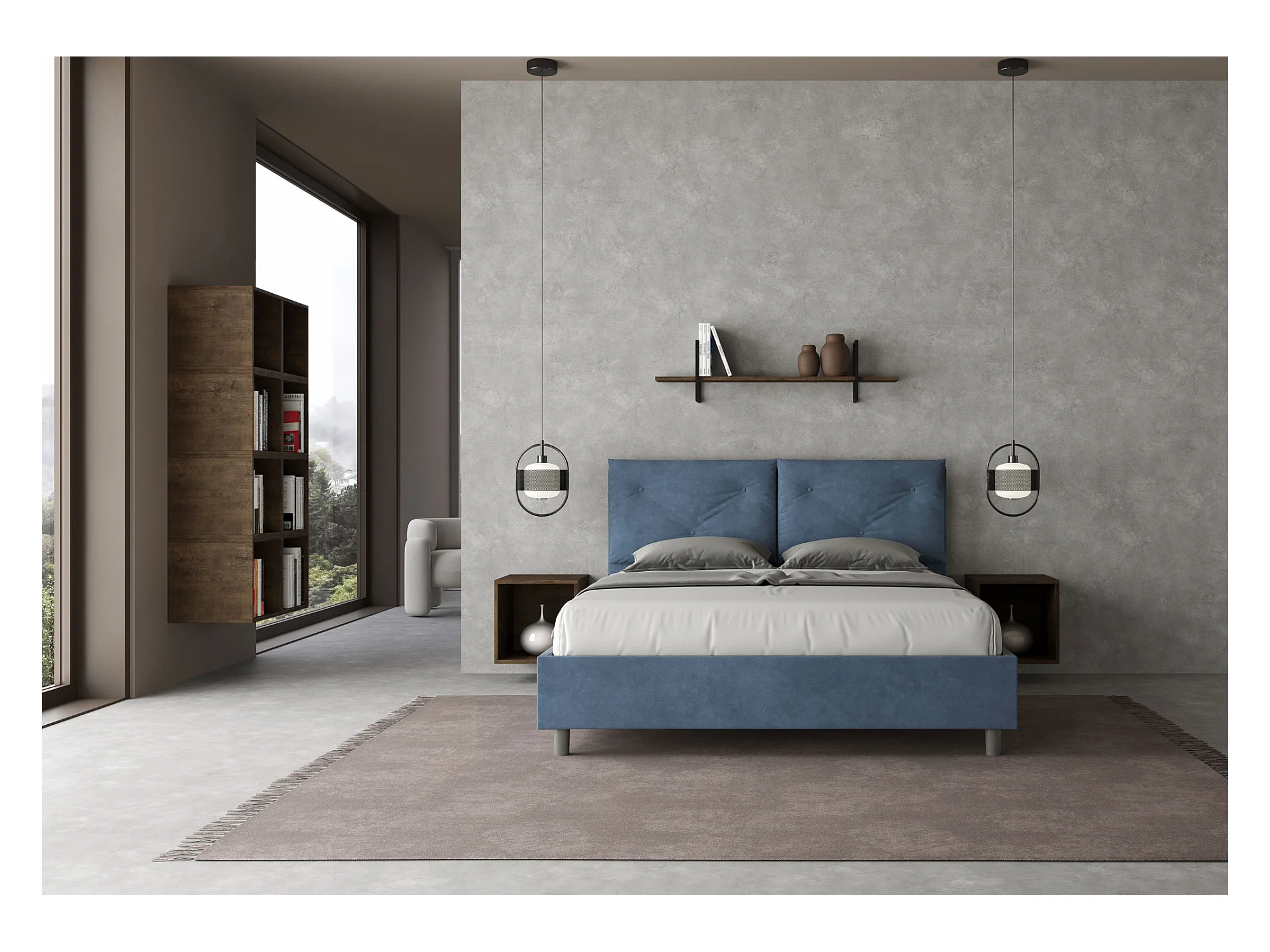 Letto queen size contenitore imbottito 150x200 microfibra blu Appia Large