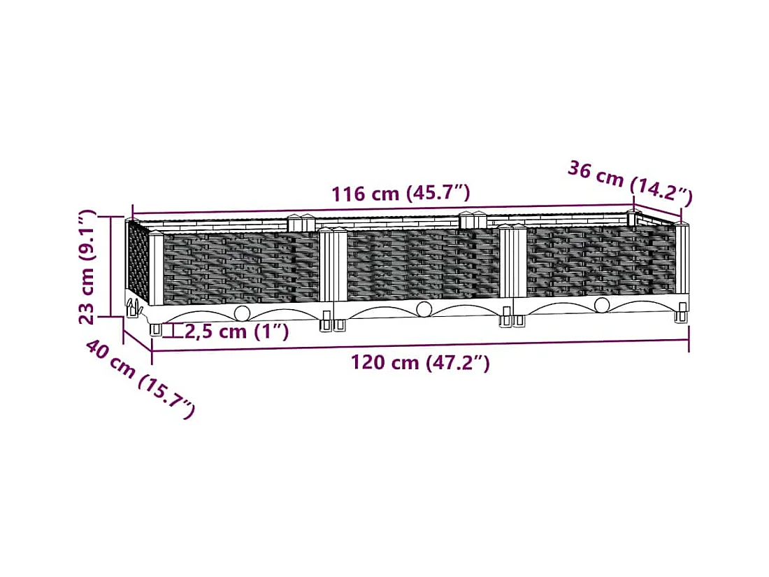 Letto da giardino rialzato in acciaio verniciato a polvere 260x40x36 cm grigio