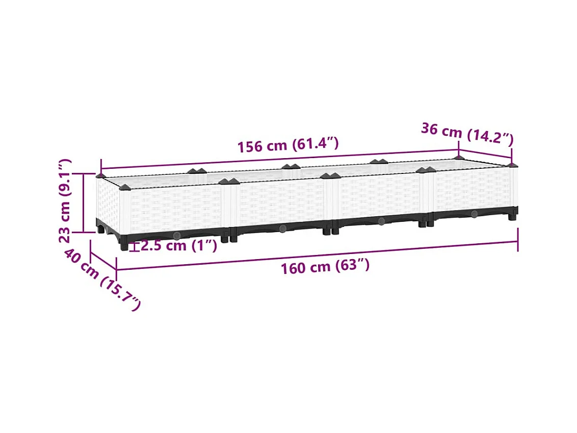 Fioriera aiuola rialzata piante fiori giardino PP 100 x 43 x 35 cm bianco 02_0001224