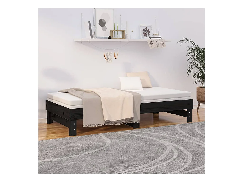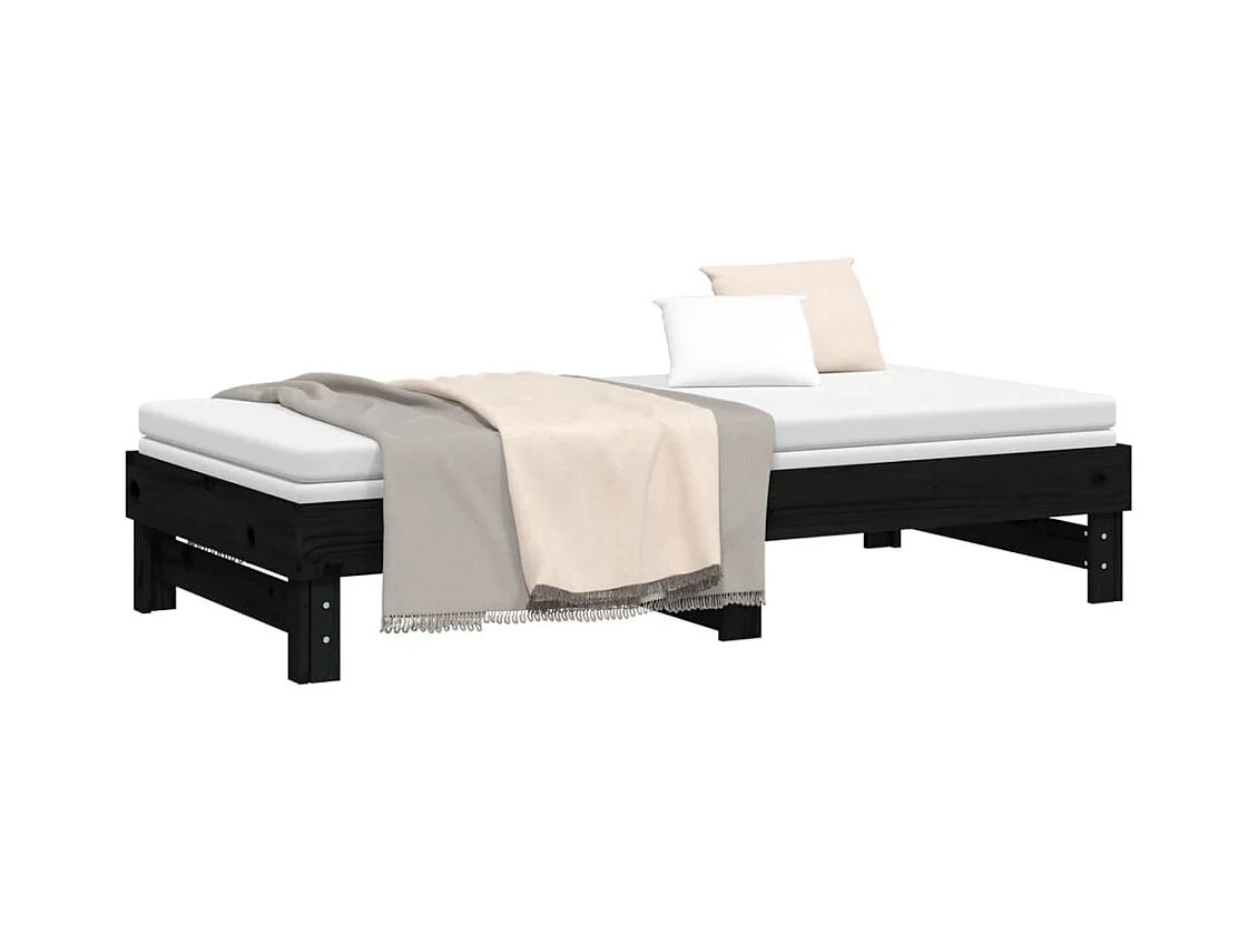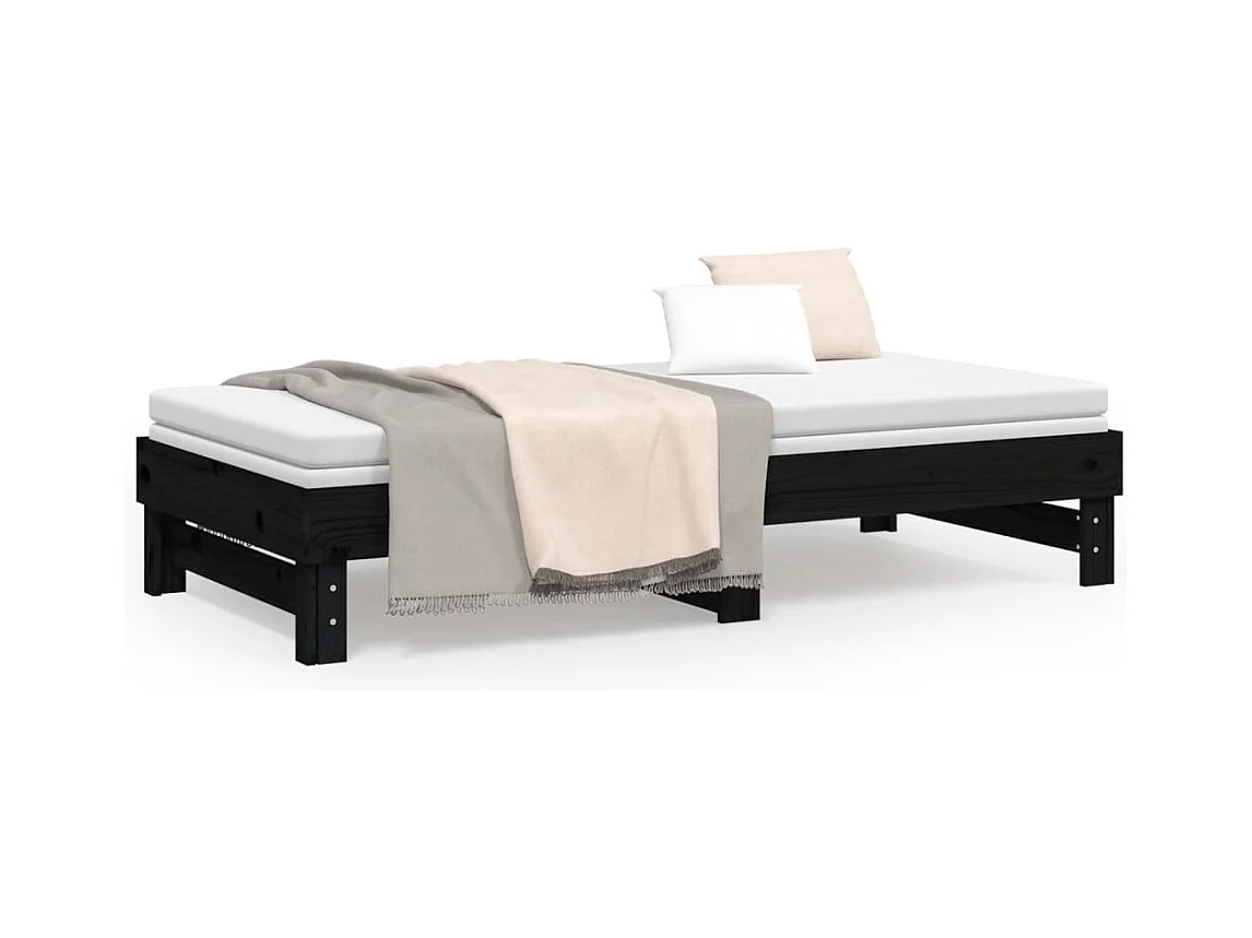 Divano letto senza materasso nero 90x190 cm in legno massello di pino