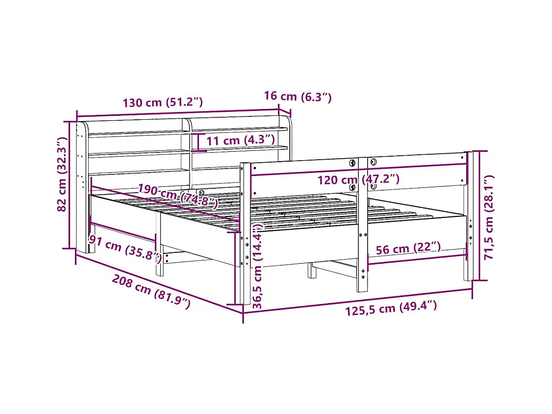 Letto senza Materasso 120x190 cm in Legno Massello di Pino