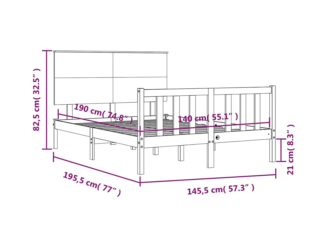 Letto senza Materasso 140x190 cm in Legno Massello di Pino