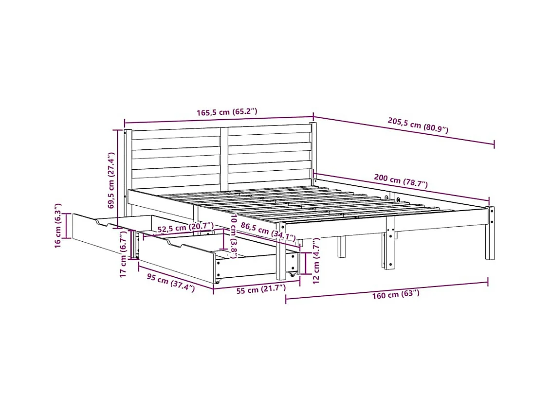 Letto senza Materasso 160x200 cm in Legno Massello di Pino