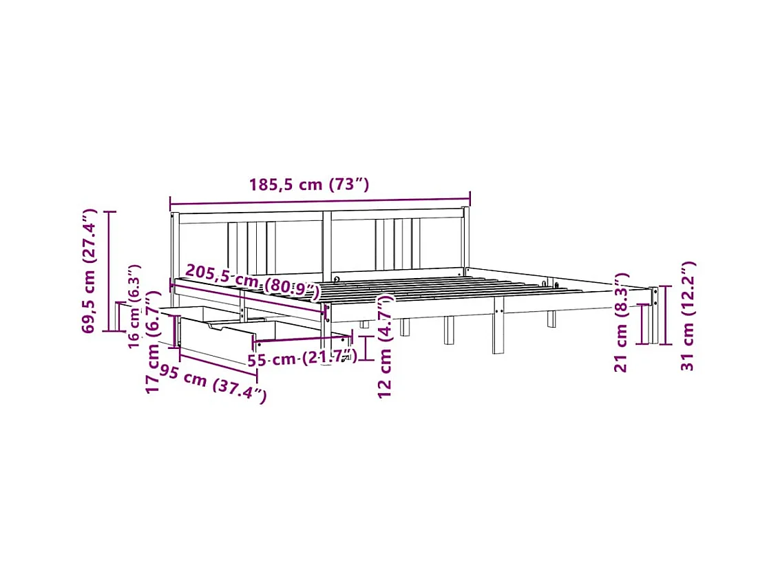 Letto senza Materasso 180x200 cm in Legno Massello di Pino