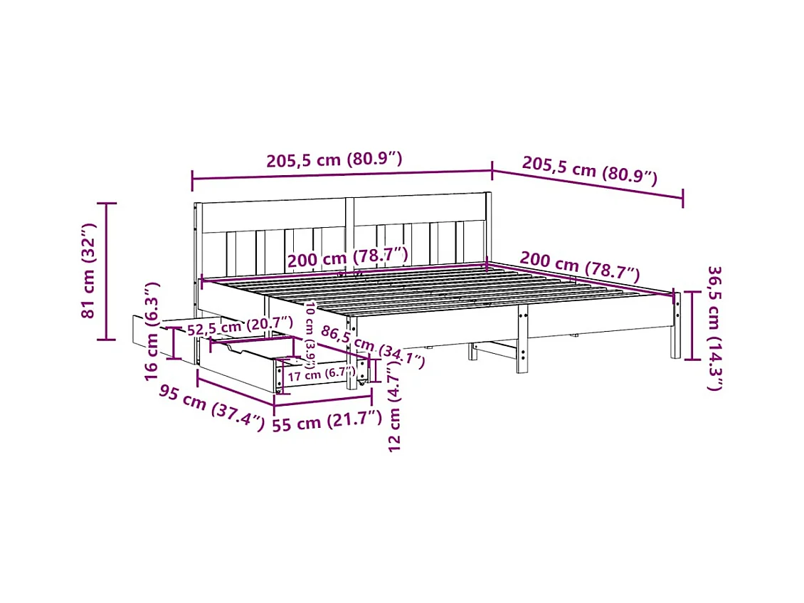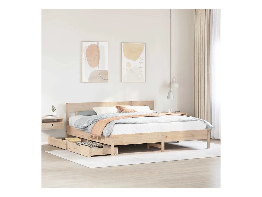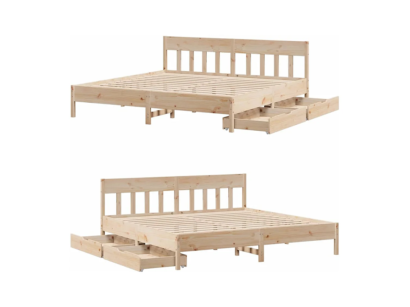 Letto senza Materasso 200x200 cm in Legno Massello di Pino