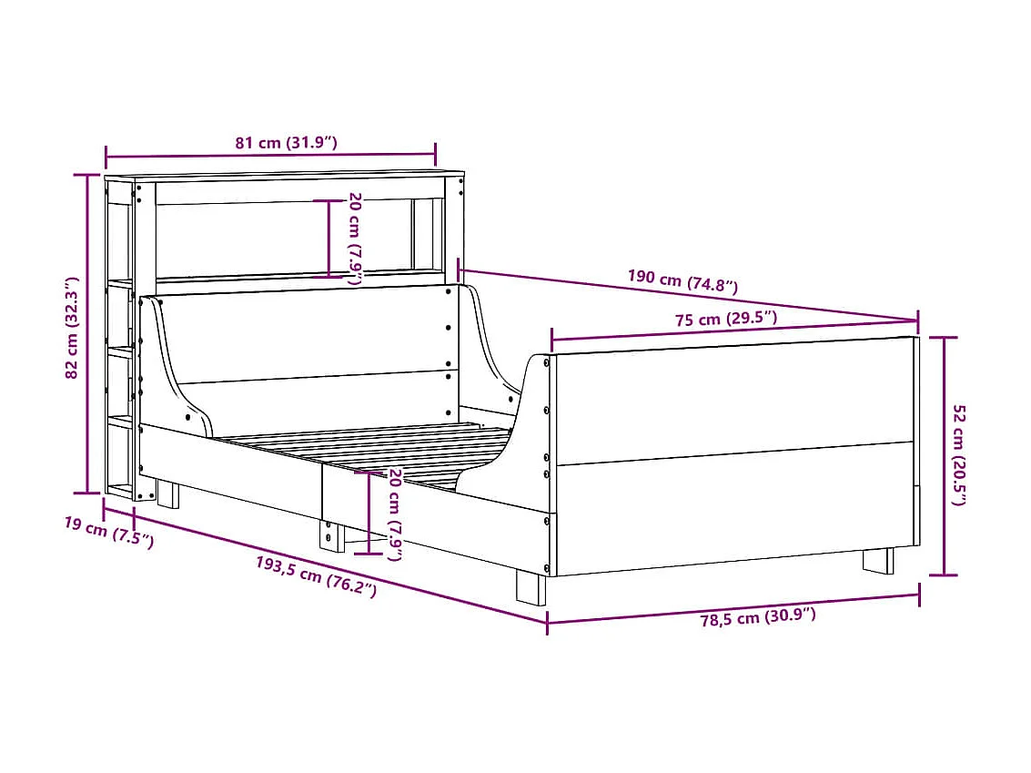 Letto senza Materasso 75x190 cm in Legno Massello Pino