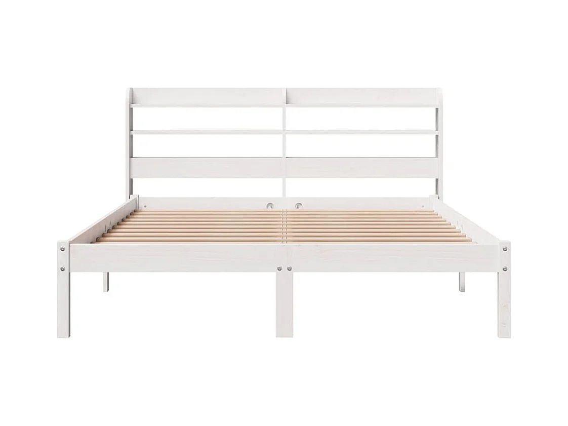 Giroletto con Testiera Bianco 140x190 cm in Legno Massello Pino