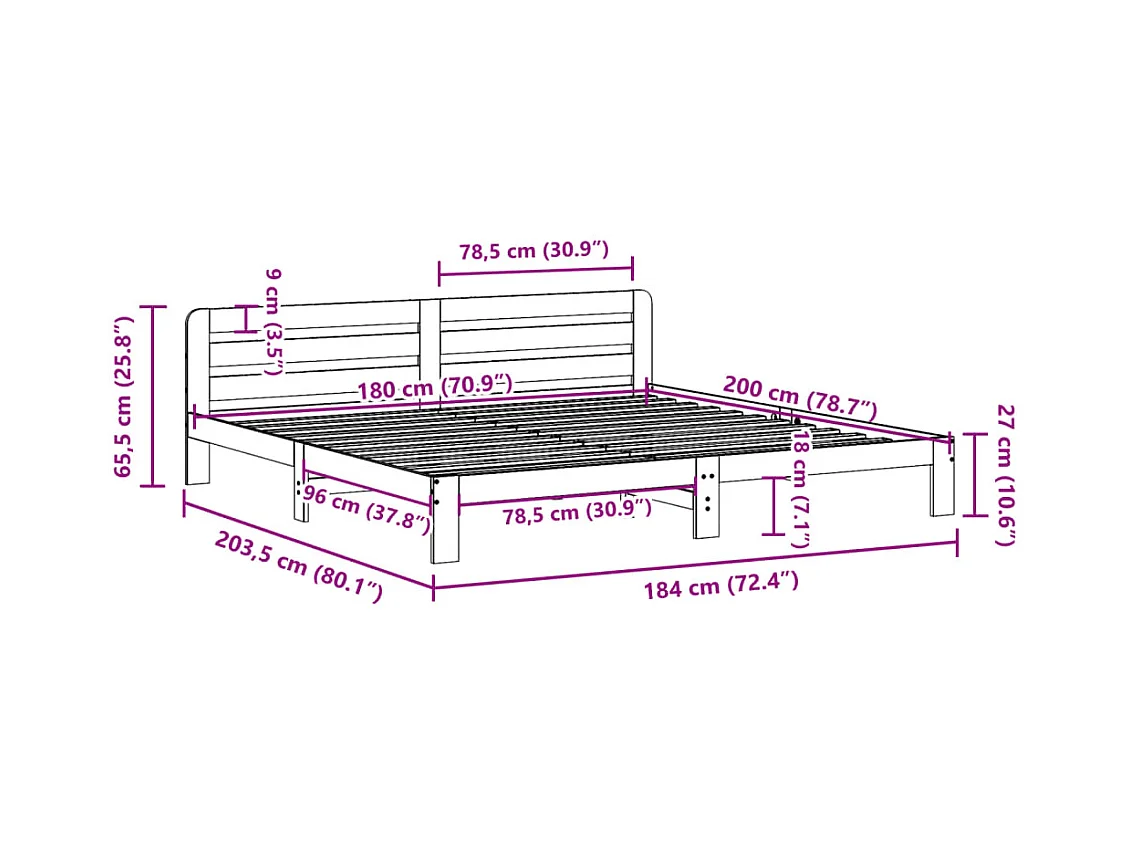 Letto senza Materasso Bianco 180x200 cm Legno Massello di Pino