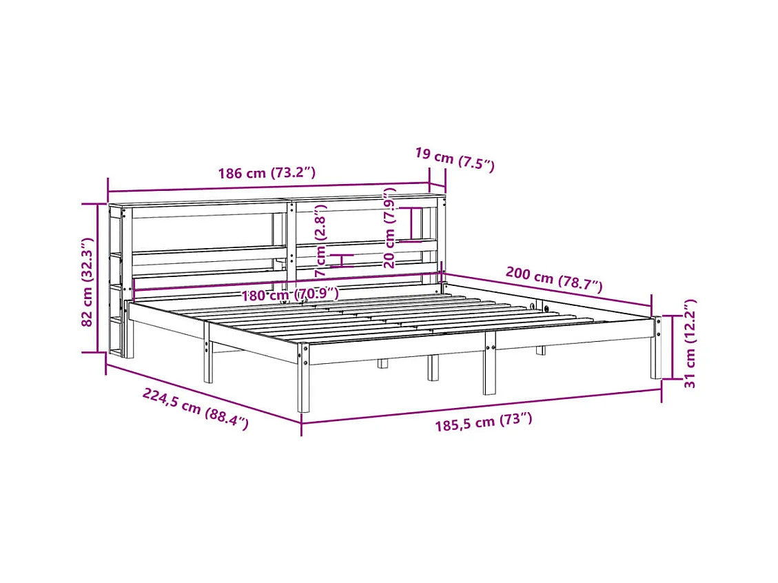 Letto senza Materasso Bianco 180x200 cm Legno Massello di Pino