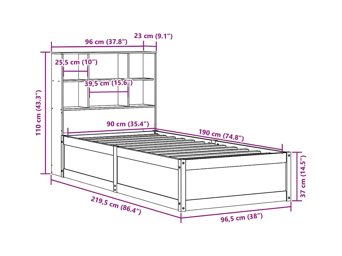 Letto Extra Lungo senza Materasso 80x200 cm in Legno di Pino