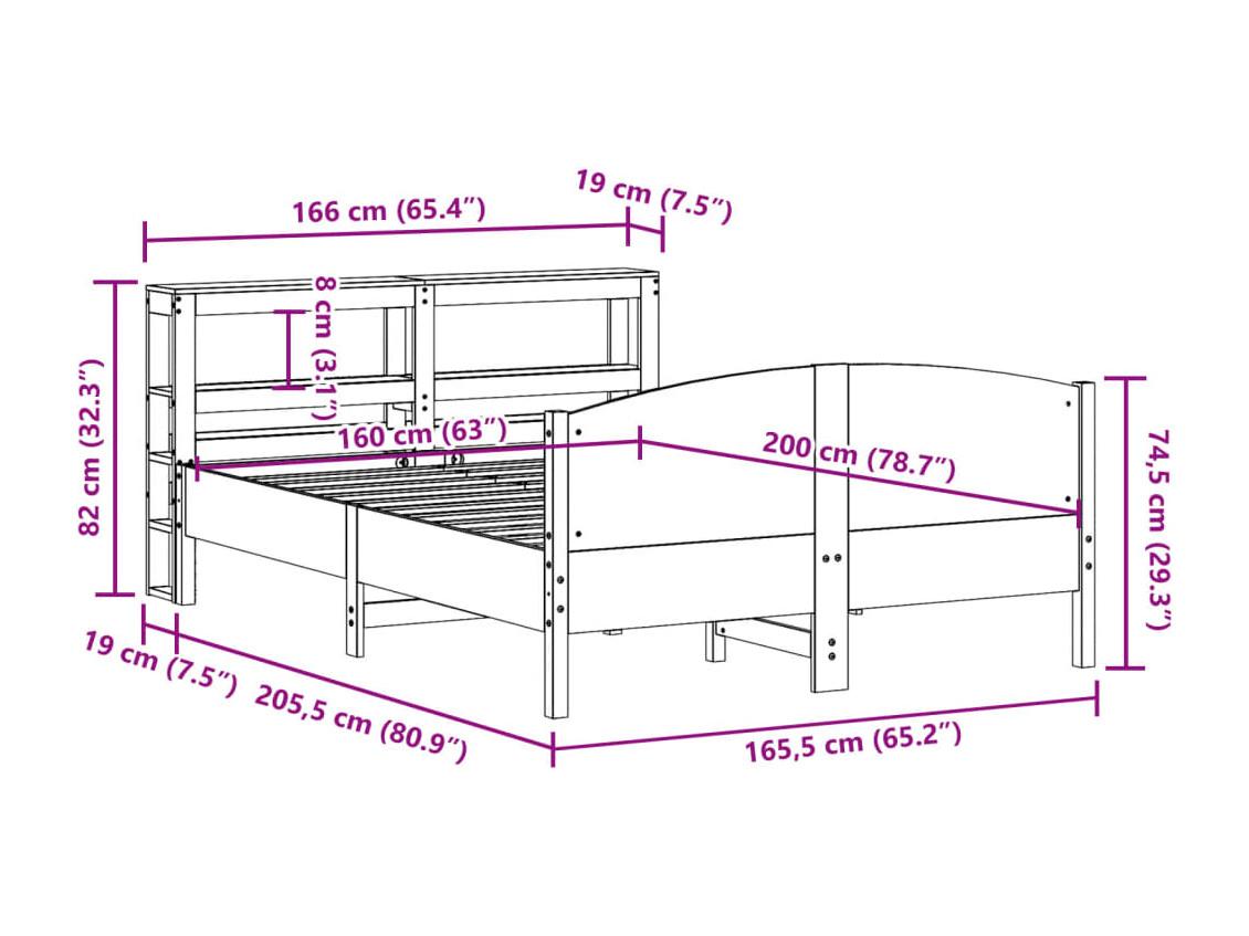 Letto Libreria senza Materasso Marrone Cera 160x200 cm in Pino