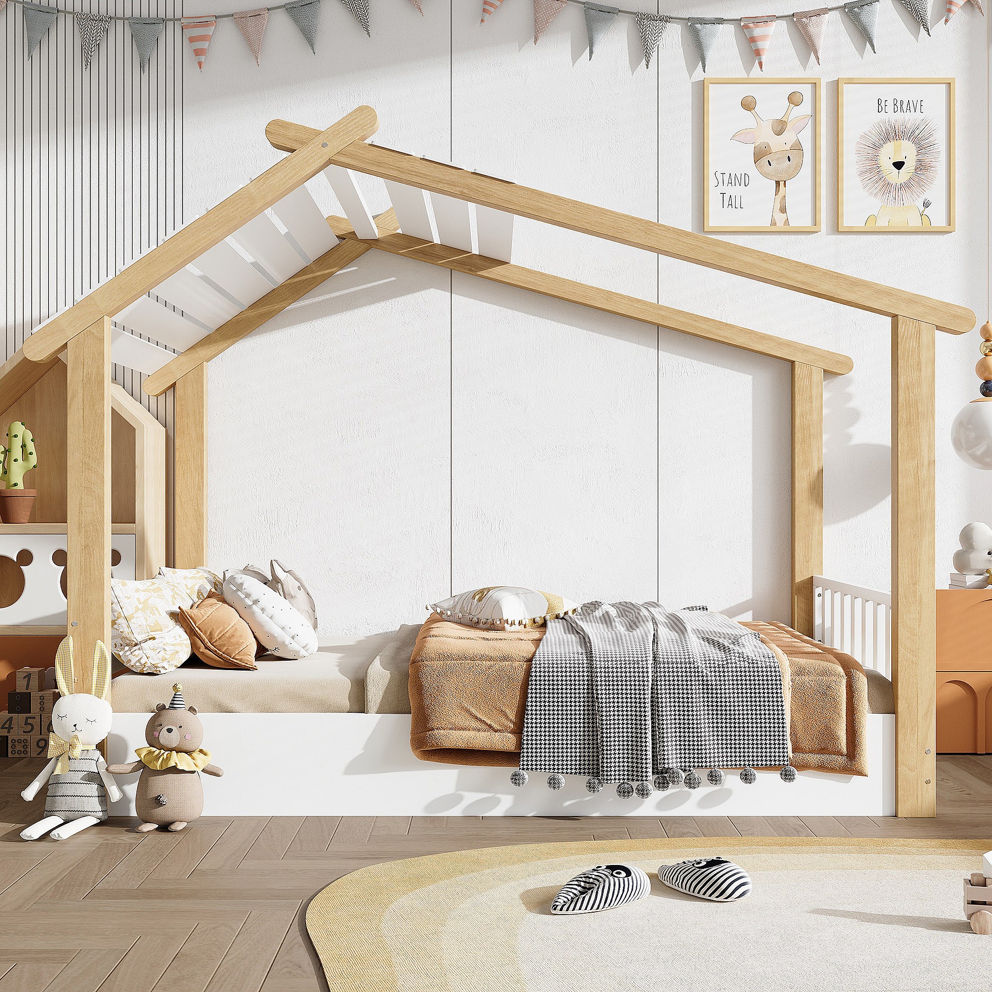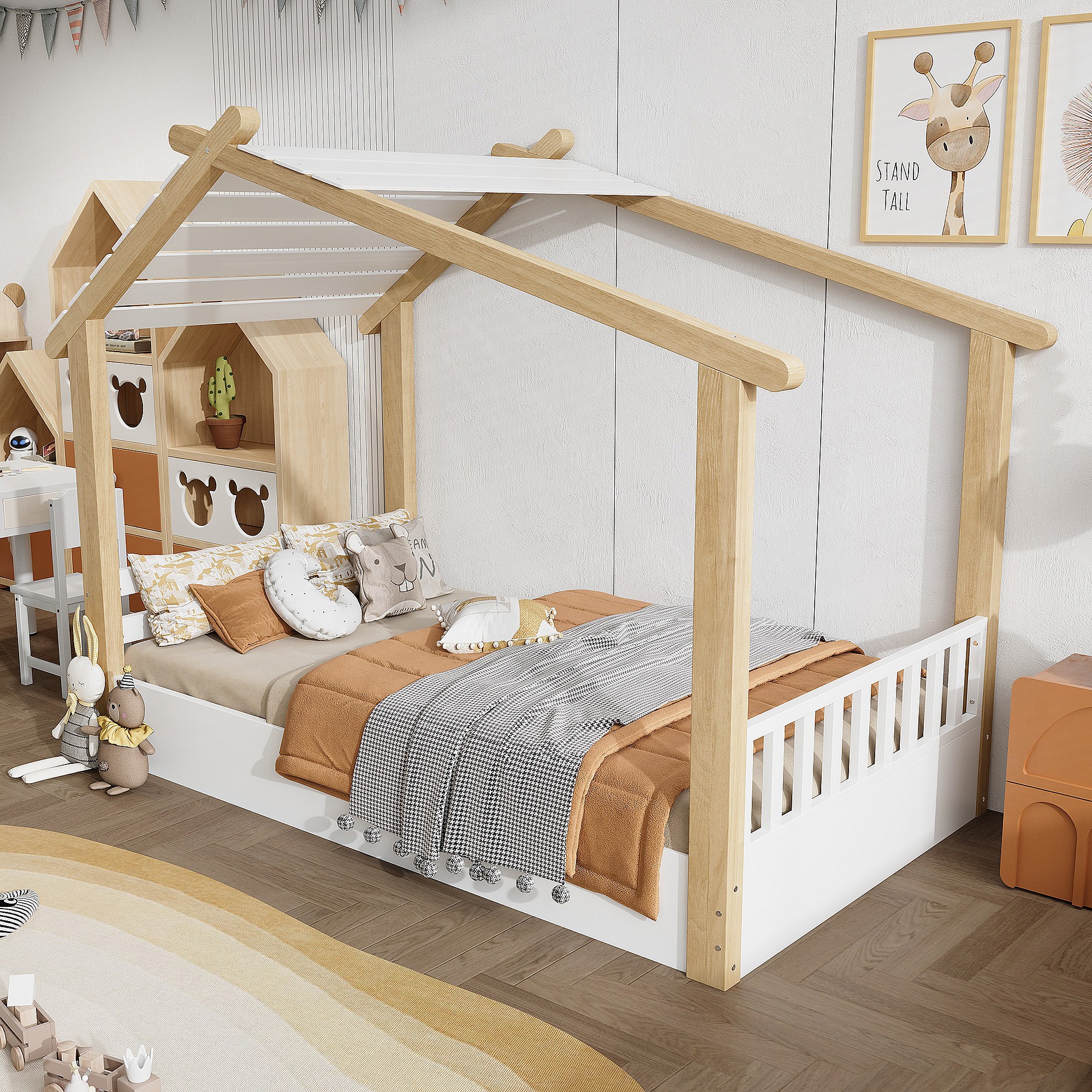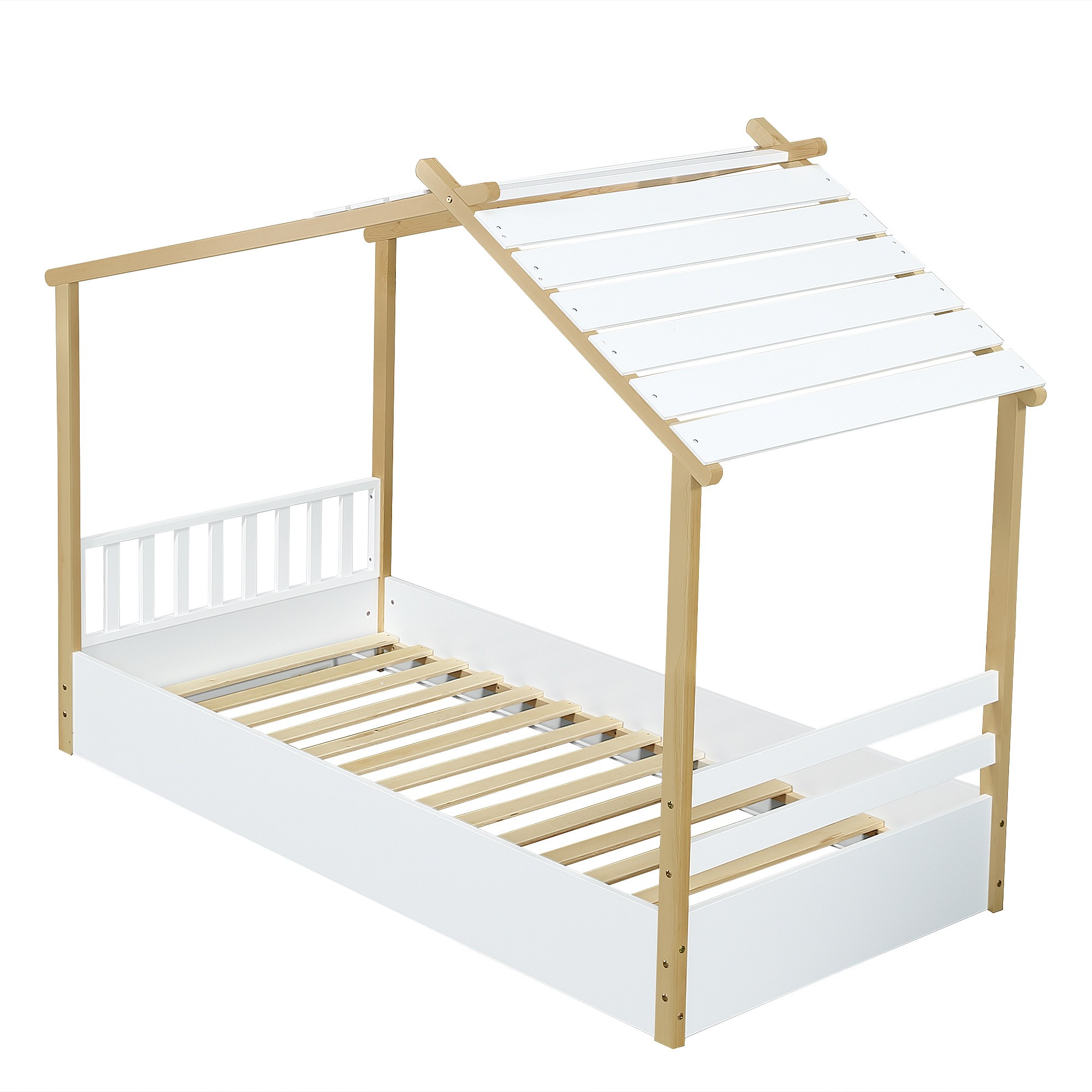 Giroletto Casetta Bambini Bianco 90x190 cm Legno Massello Pino
