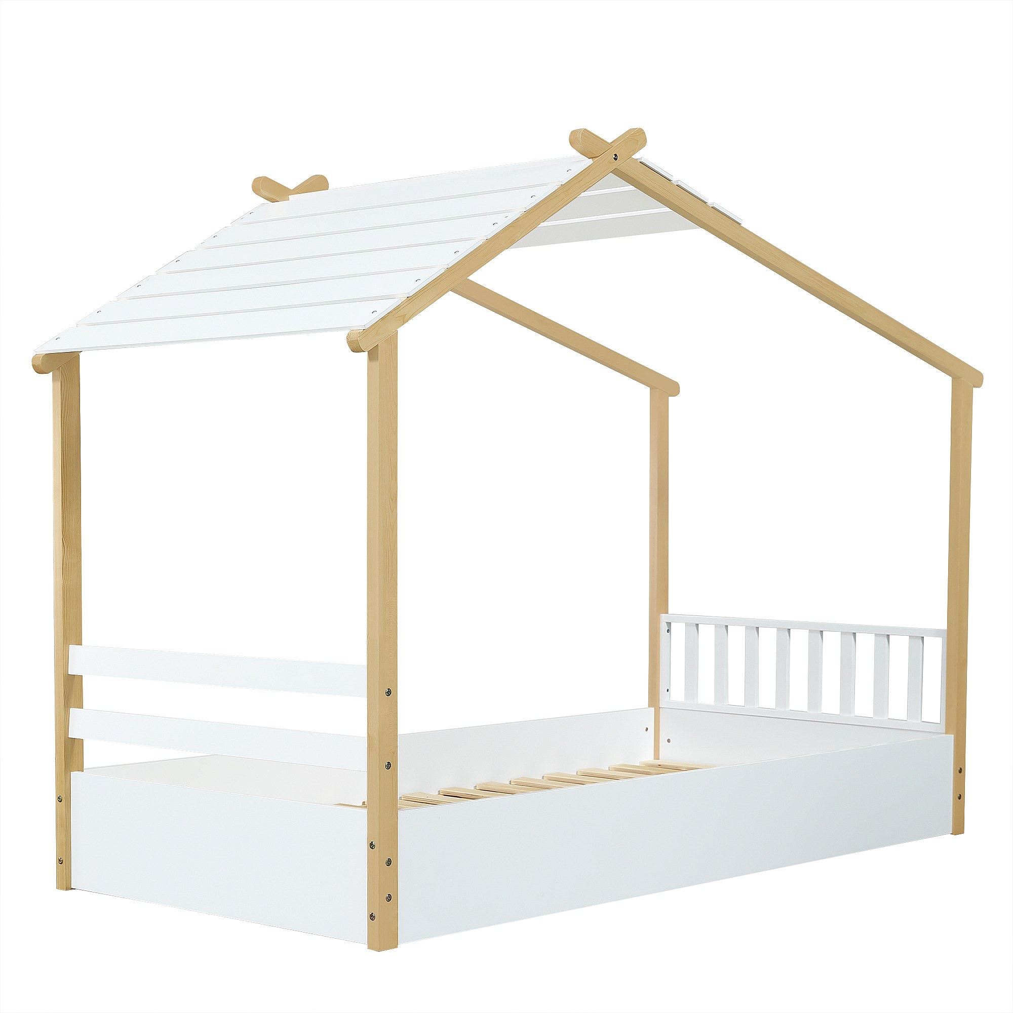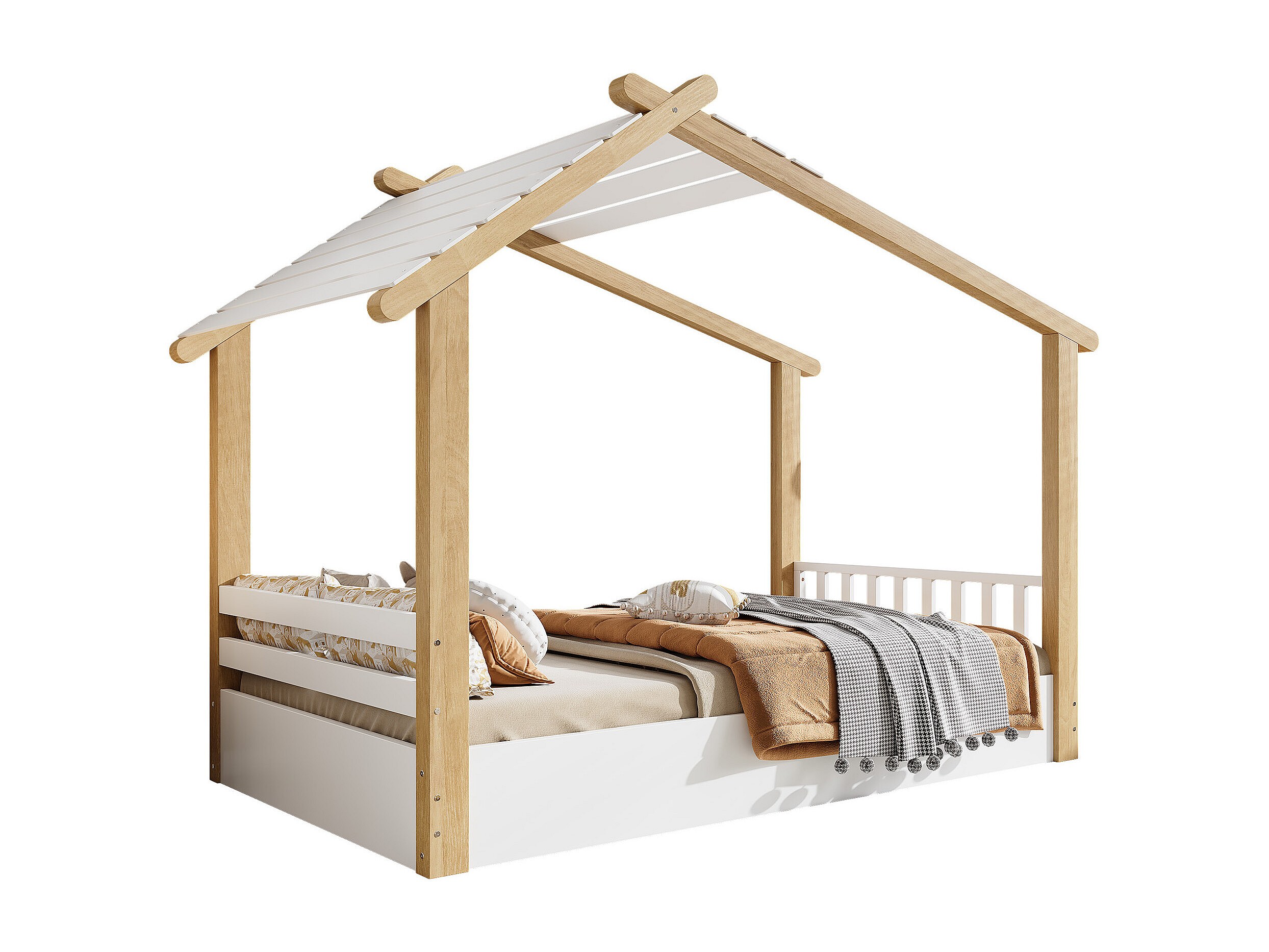 Letto singolo 90 x 190 cm - Letto per bambini in stile baita - legno bianco - materasso non incluso