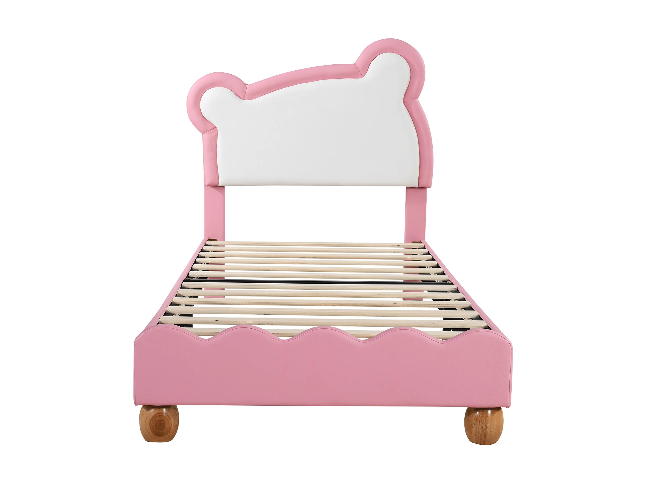Letto singolo 90 x 200 cm con testiera accogliente orsetto - rete a doghe in legno - ecopelle - colore rosa