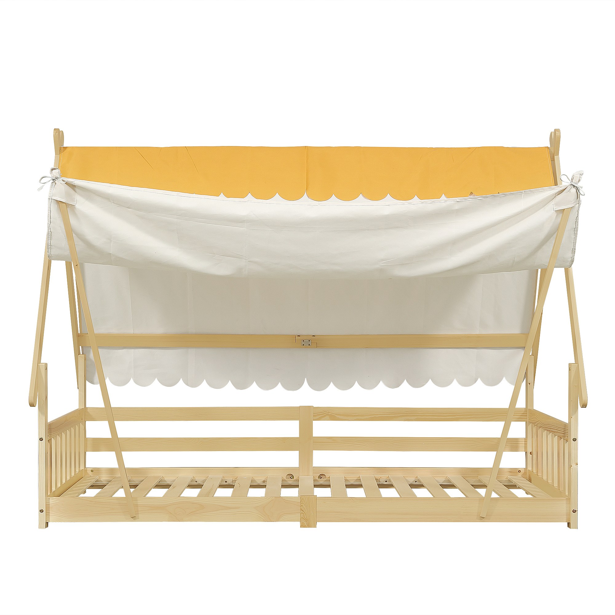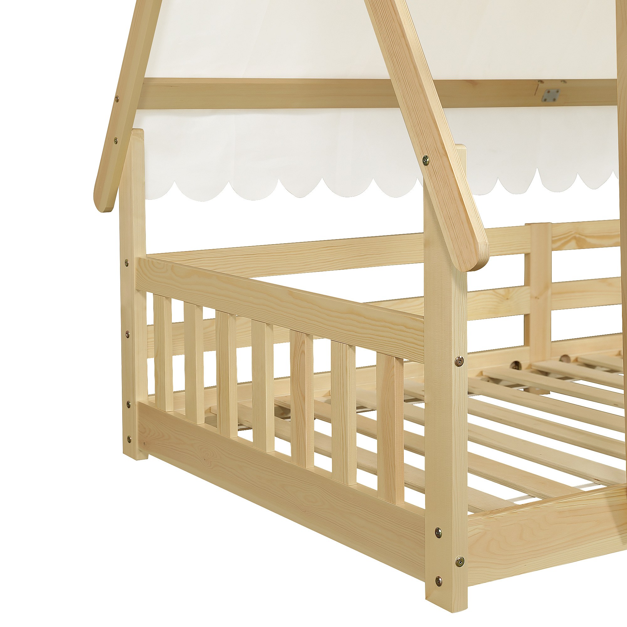 Letto singolo 90 x 200 cm - Letto per bambini con barriera e tenda - design baita - materasso non incluso