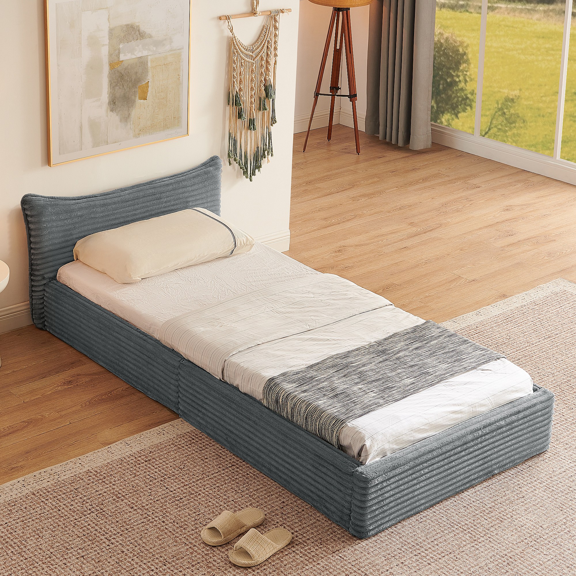 Letto singolo 90 x 200 cm - Divano letto con 2 cassetti e caricabatterie USB - ampio spazio di archiviazione - biancheria grigia - materasso non incluso