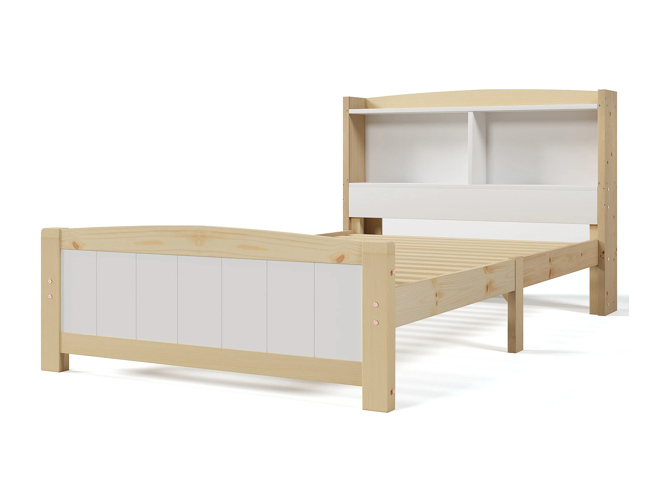 Letto singolo 90x200 cm con testiera contenitore - Letto per bambini con materasso - Naturale chiaro e bianco