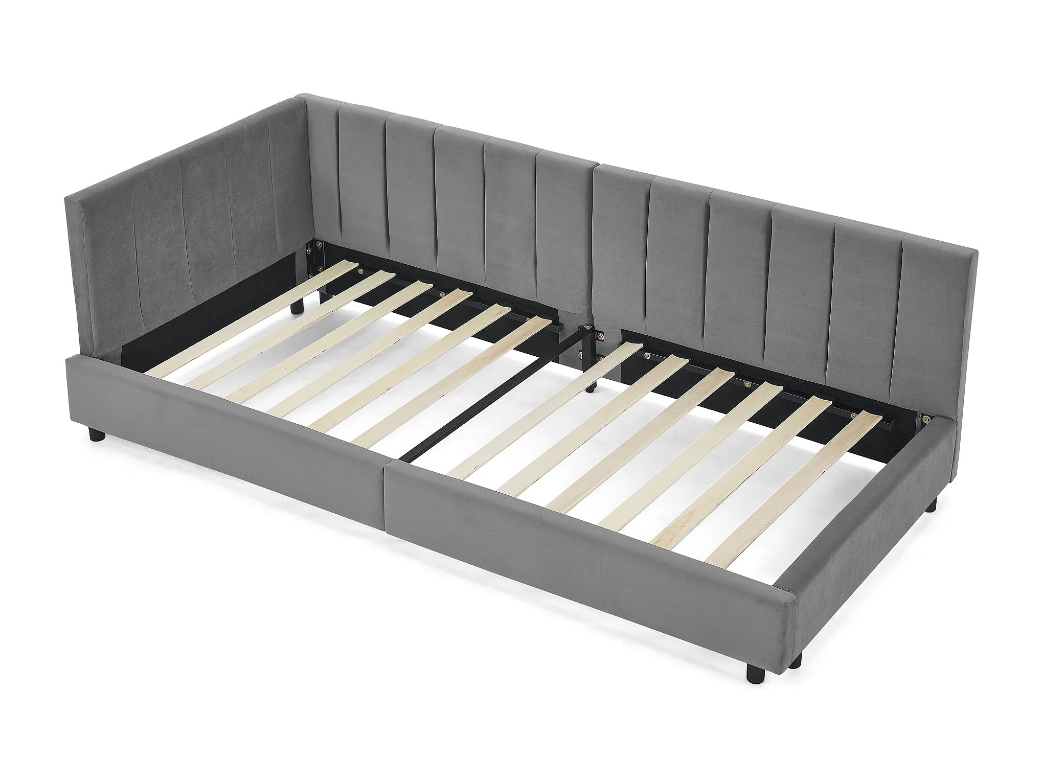 Divano letto 90x200 cm, letto singolo con contenitore, struttura in legno massello per bambini e ragazzi - Grigio