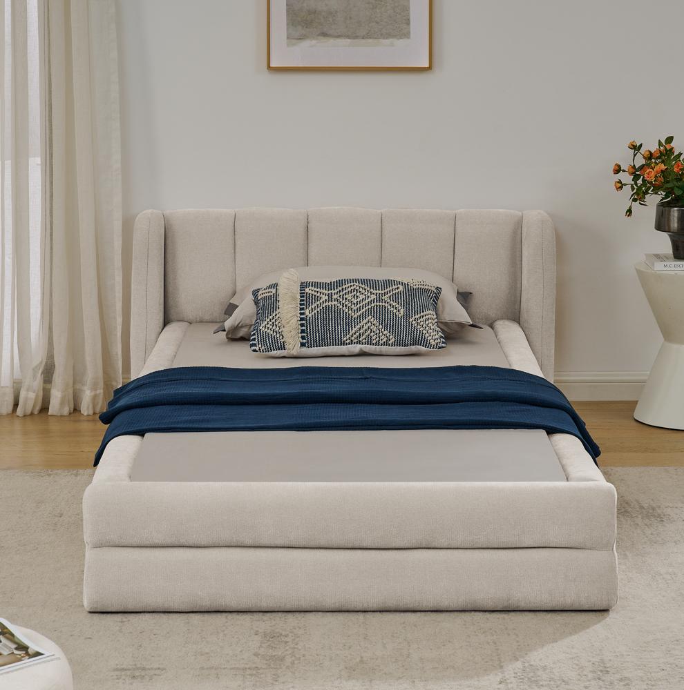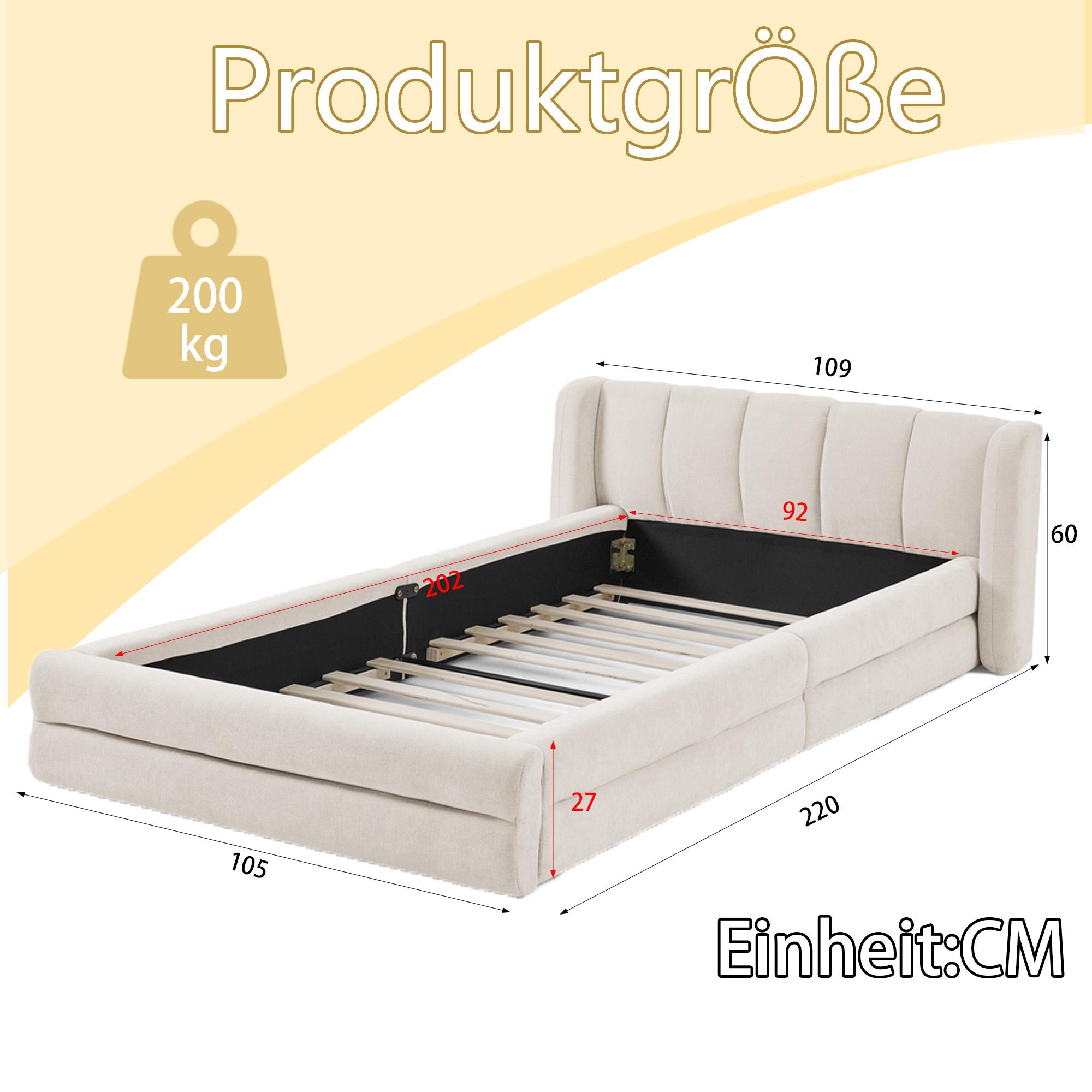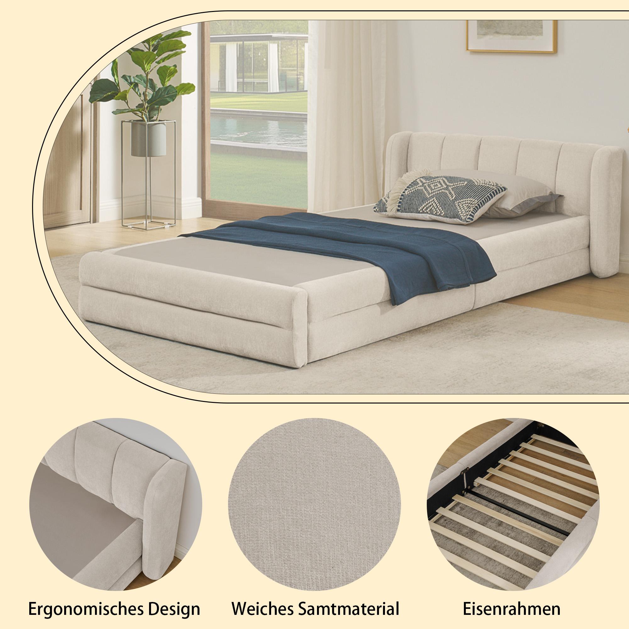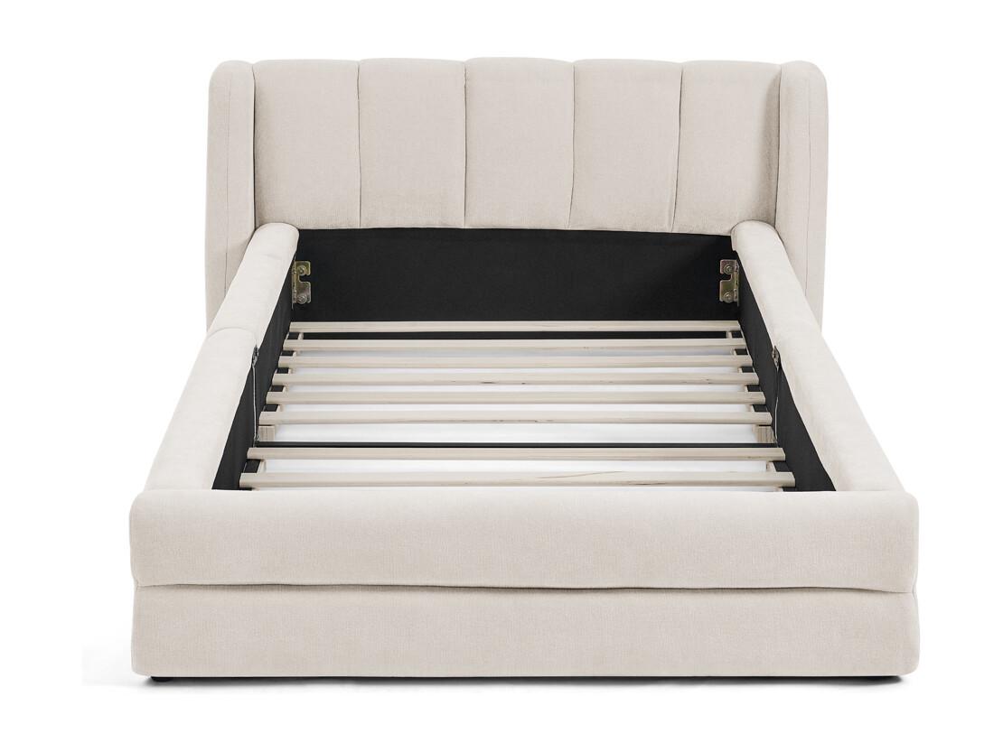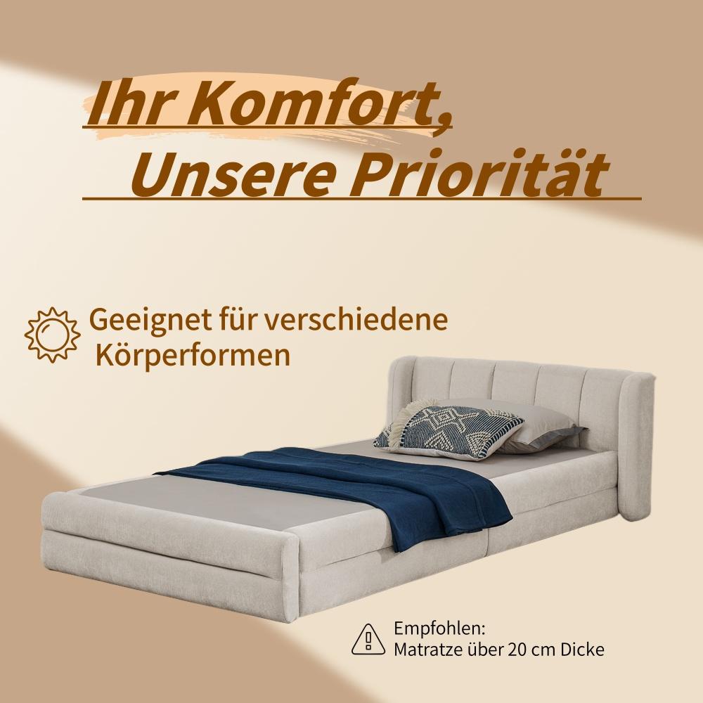 Letto singolo 90x200 cm, morbido tessuto in ciniglia, schienale comodo, beige (senza materasso) (220x105x60 cm)