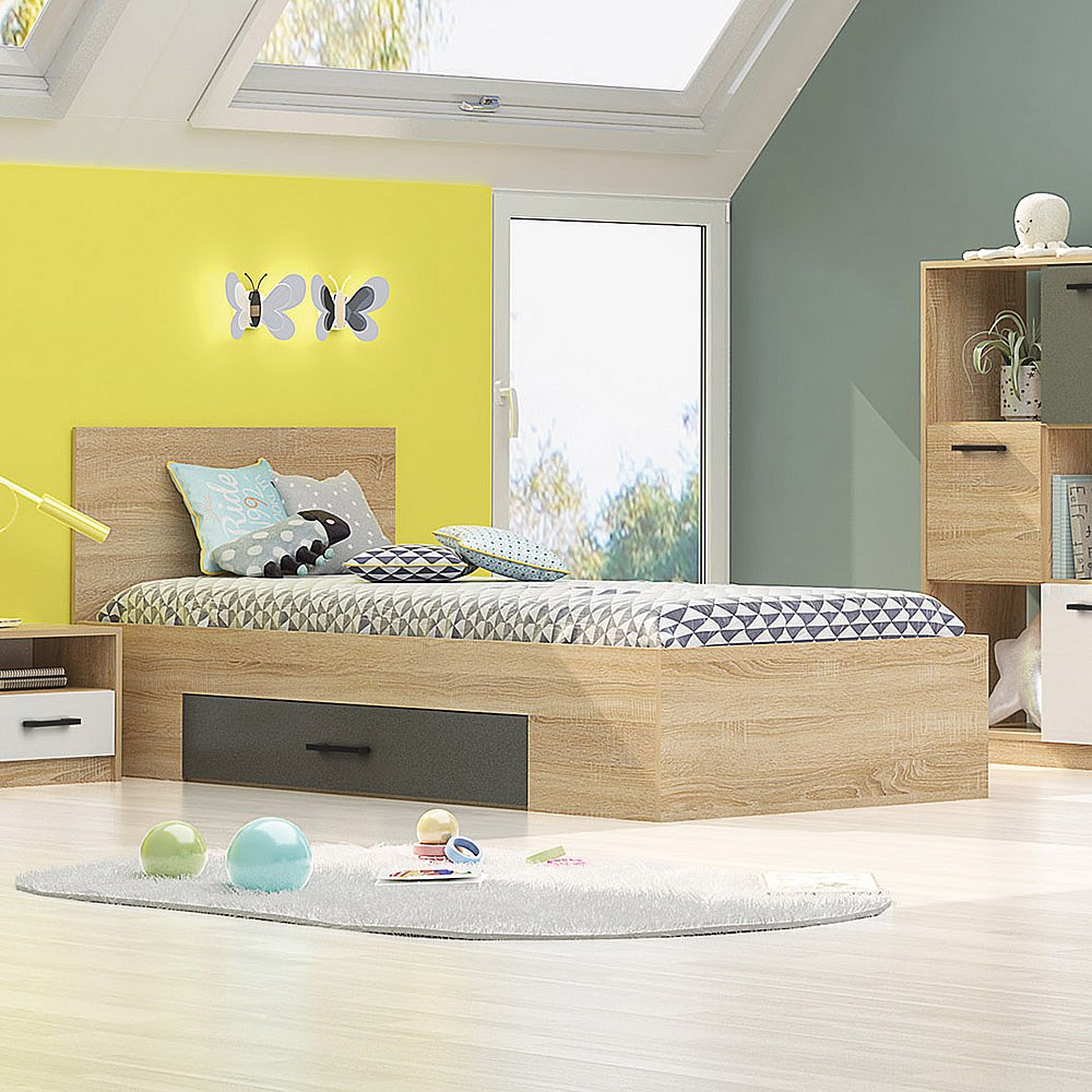 Letto singolo con cassetto laterale 90x200 cm in rovere chiaro e grigio antracite LG73
