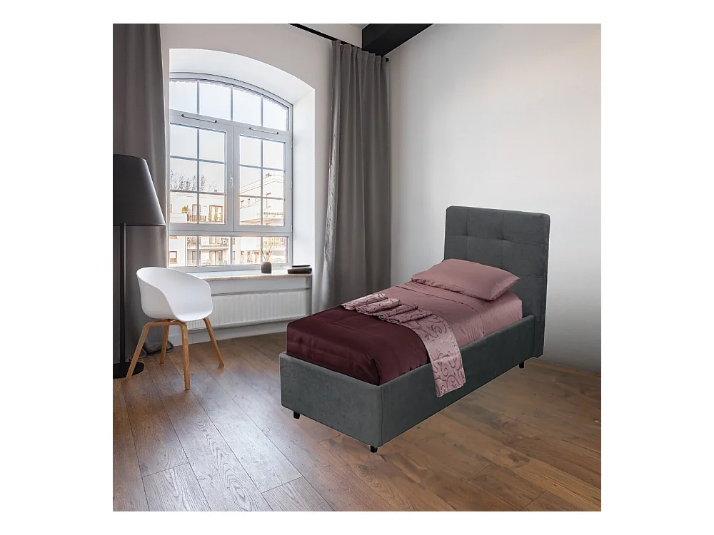 Letto singolo con contenitore Ascoli 102x210x110H tessuto colore ash grigio