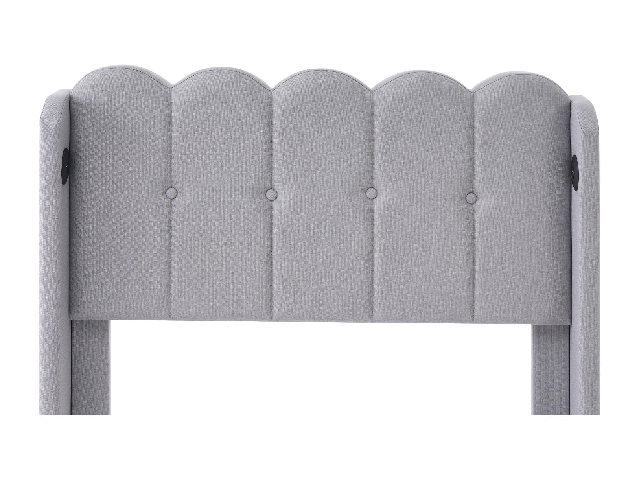 Letto singolo con funzione di ricarica USB Type C, struttura in lino grigio, base in legno (103x208x103cm)