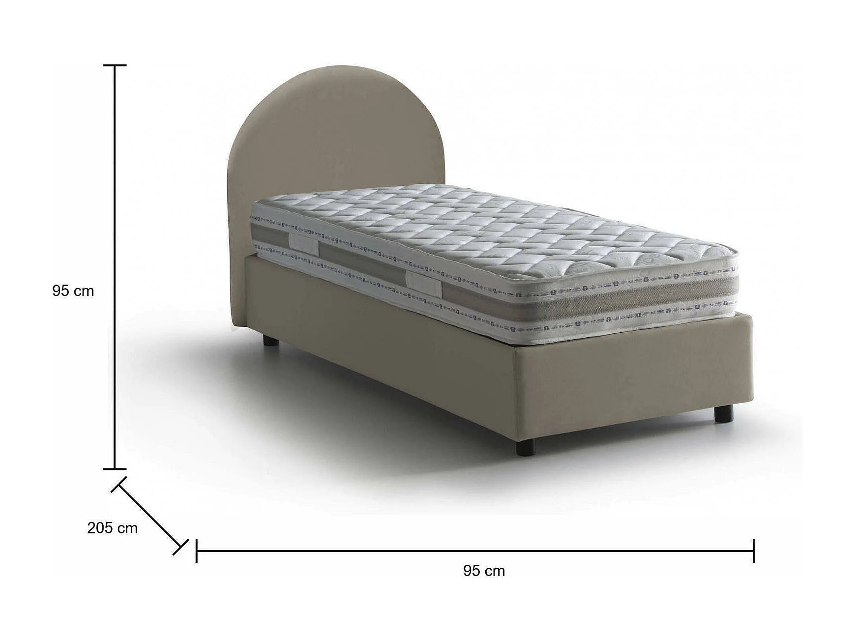 Letto Singolo Cirilla, Materasso Incluso Made in Italy, 95x205 cm Grigio Tortora