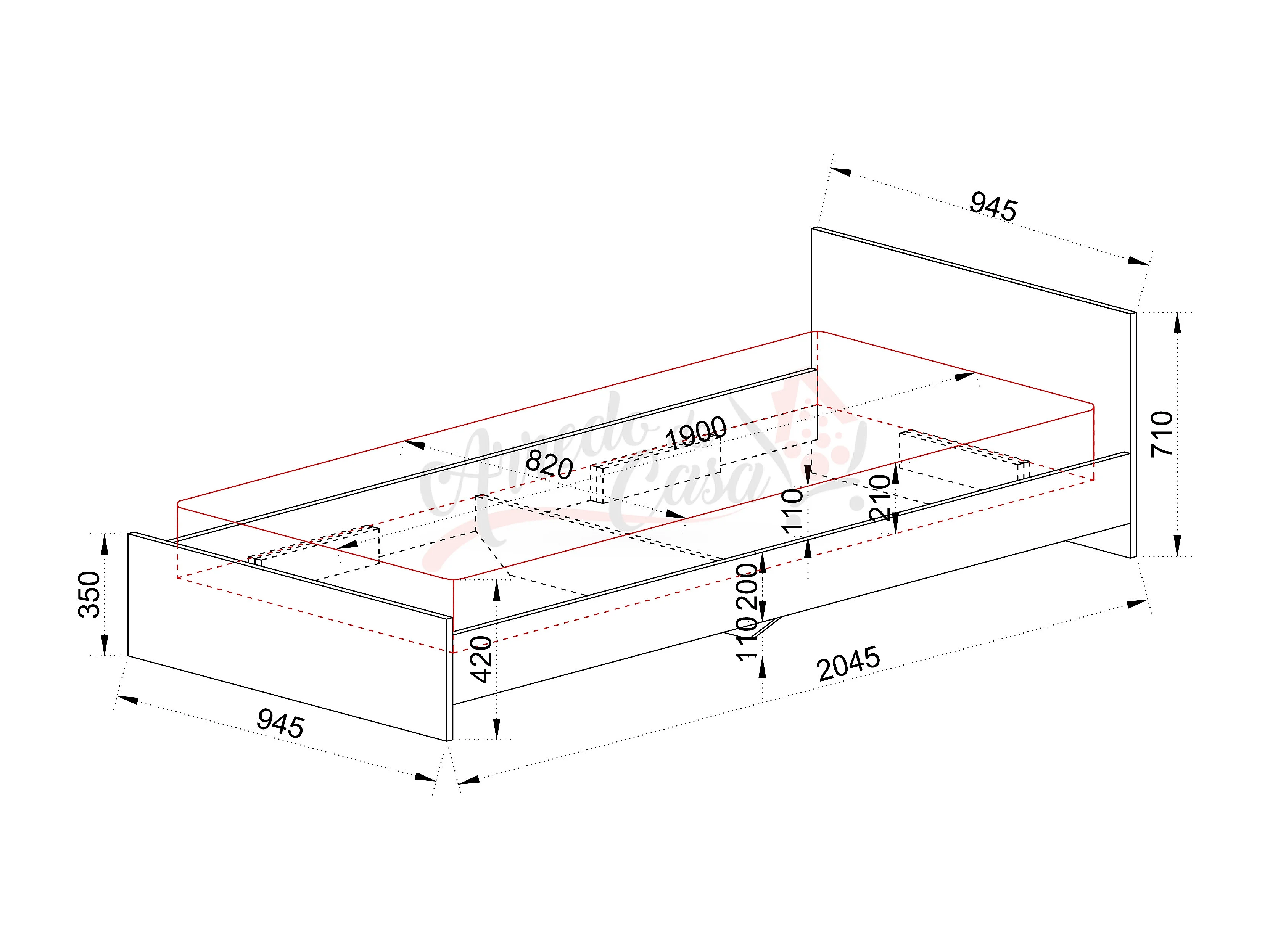 Letto singolo design classico effetto legno 200x90 rovere LI2006