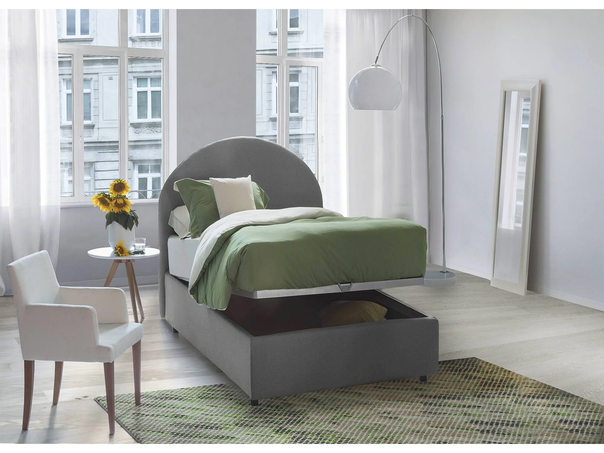 Letto Singolo Egle, Materasso Incluso Made in Italy, 95x205 cm Grigio